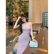 ピンクの u ネックサスペンダードレスの女性の夏の純粋な欲望スリムウエストセクシーなヒップカバーロングスカート気質フィッシュテールスカート サマー 夏物 ピュア 0921923595198750