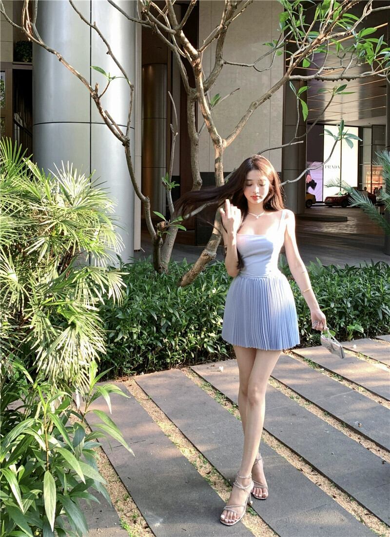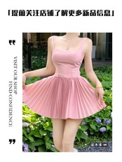純粋な欲望バレエスタイルサスペンダードレス女性の夏の 2023 新しいスタイルウエスト痩身バックレスプリーツ A ラインスカート サマー 夏物 Aライン 0921914942193045