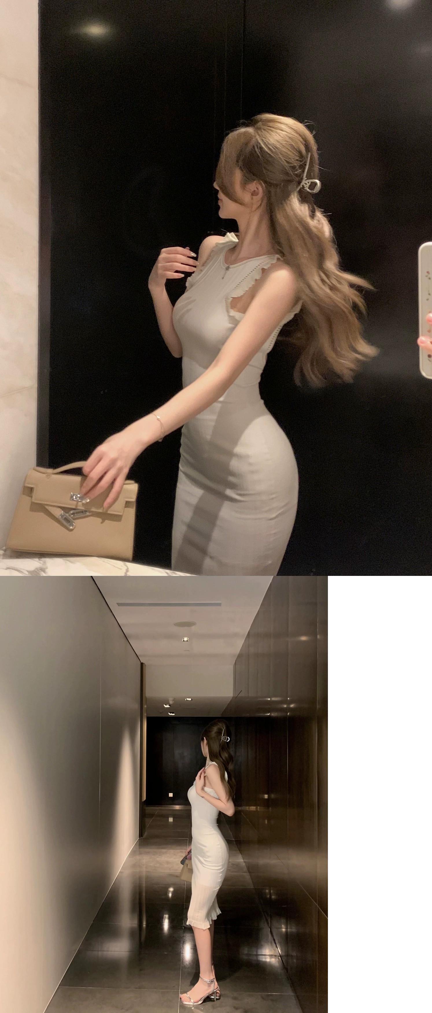 ニッチデザイン菌エッジスプライシングノースリーブドレス女性の夏 2023 新しい純粋な欲望気質バックパックヒップスカート サマー 夏物 リュック ピュア 0921920701284680