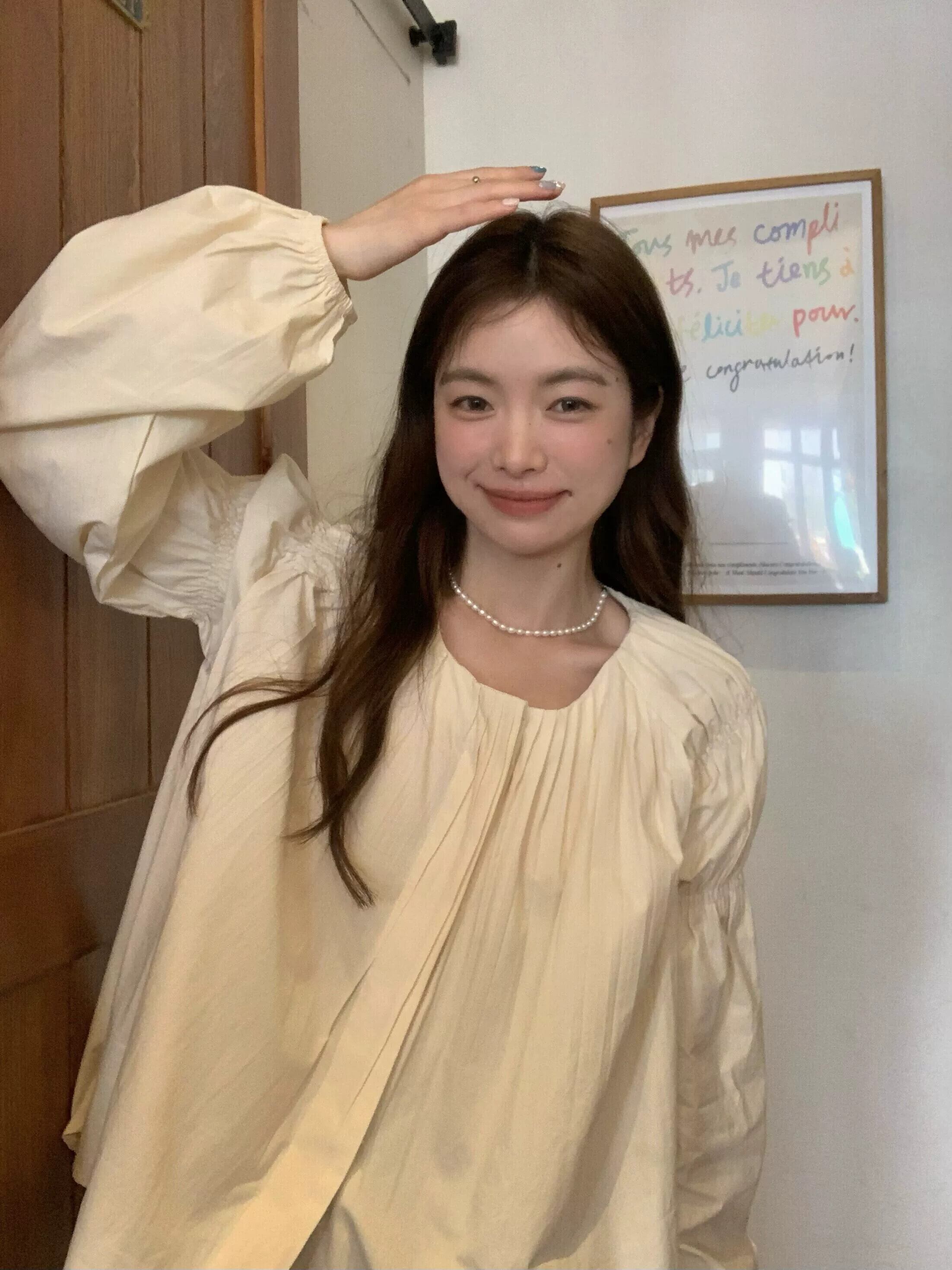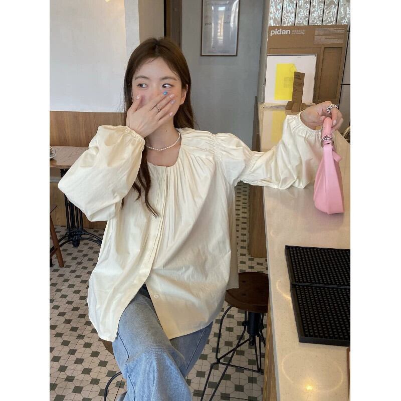 スタイルプリーツラウンドネック長袖シャツ女性秋 2023 新しいスタイル優しいスタイル甘いルーズ痩身多目的シャツ ロング 大人ガーリー スウィート キュート カジュアル オータム 秋物 Oネック 0921912527660412