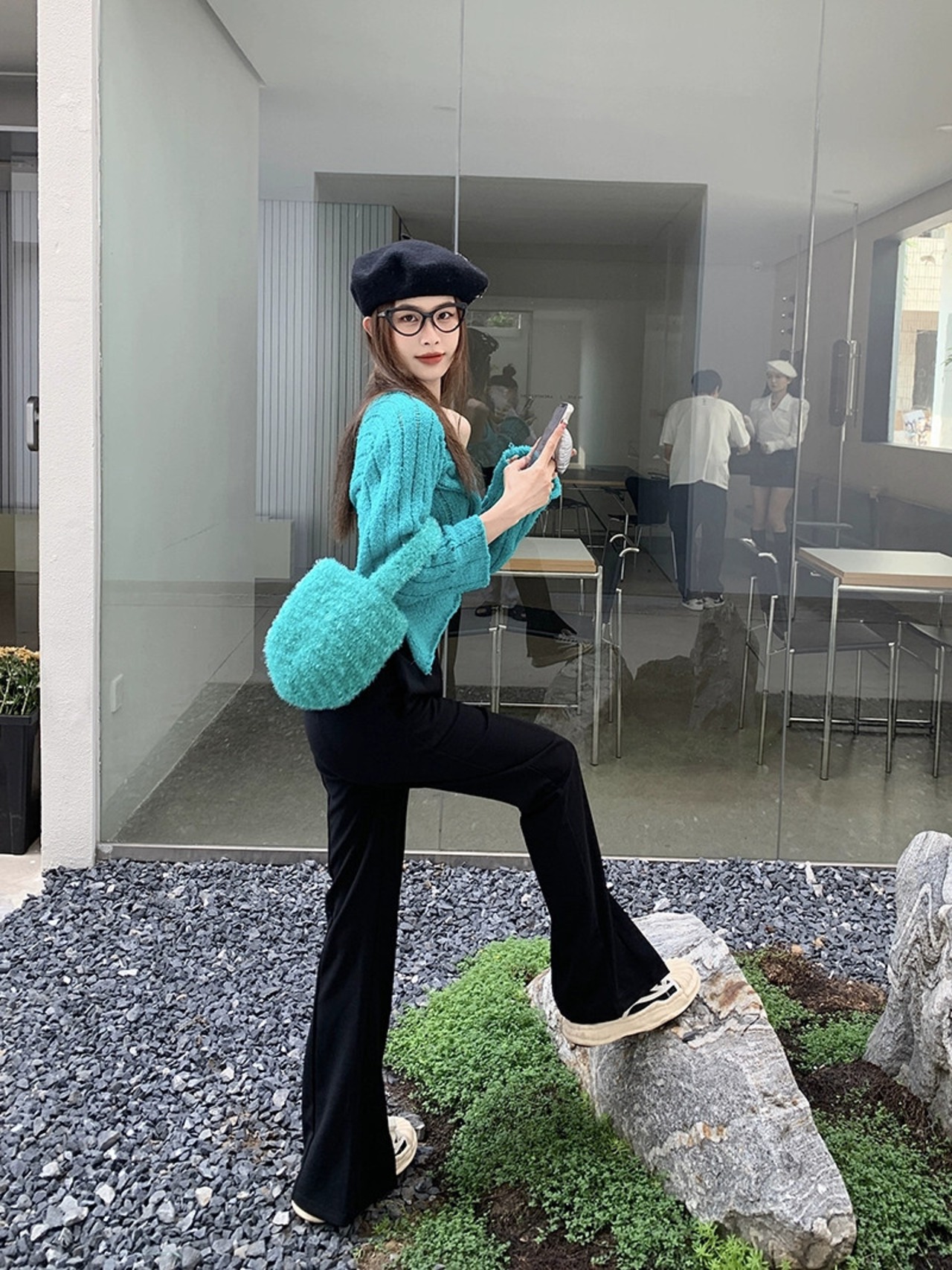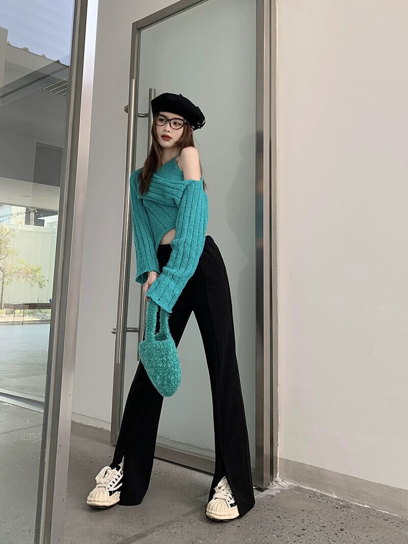 弾性ハイウエスト痩身スリット弾性カジュアルパンツ女性の夏 2023 新しい多用途気質ワイドレッグフロアレングスズボン エラスティック 伸縮 サマー 夏物 092193098404214