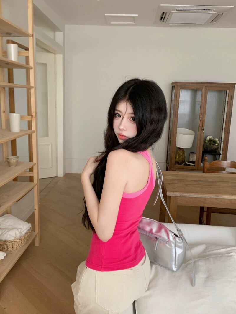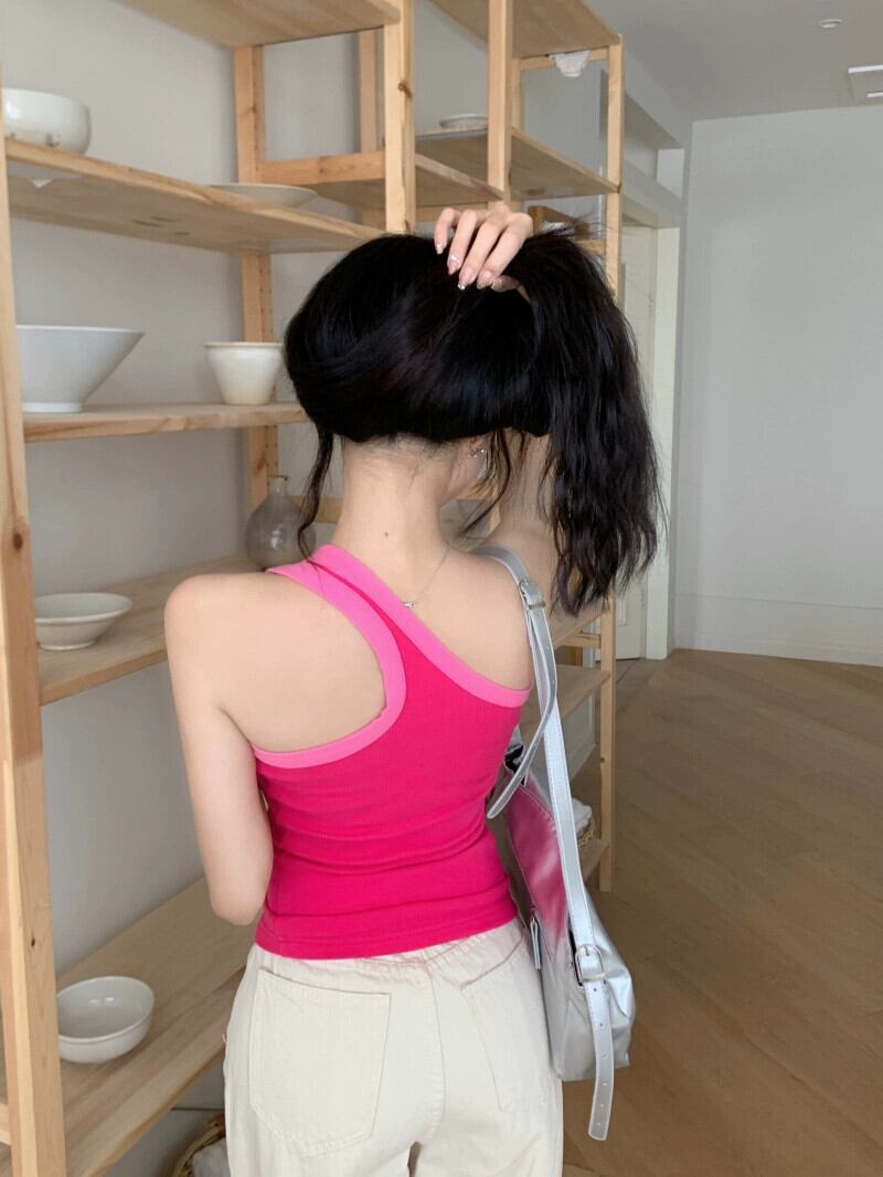 ミレニアルスイートガールコントラストカラースラントカラーキャミソール女性の夏の 2023 気質ショートスリムフィットトップ 大人ガーリー スウィート キュート カジュアル サマー 夏物 0921959909191638