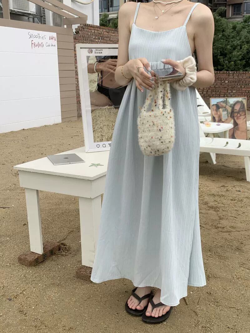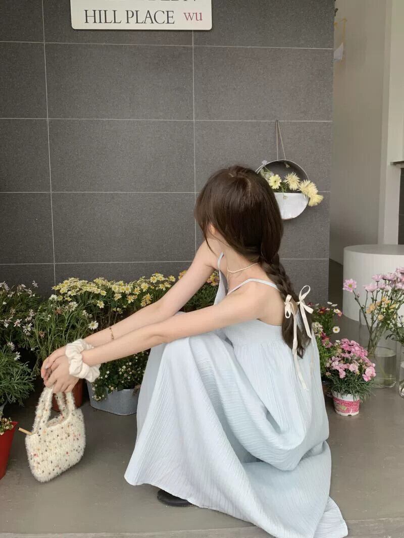 優しいスタイル y ブルーサスペンダードレス女性 2023 秋の新しいスリムで多用途なバックレス A ラインスカート オータム 秋物 Aライン 0921947692023366
