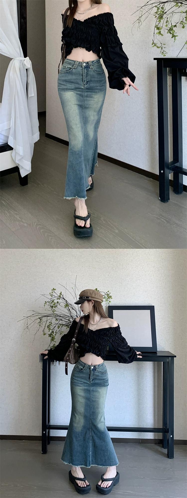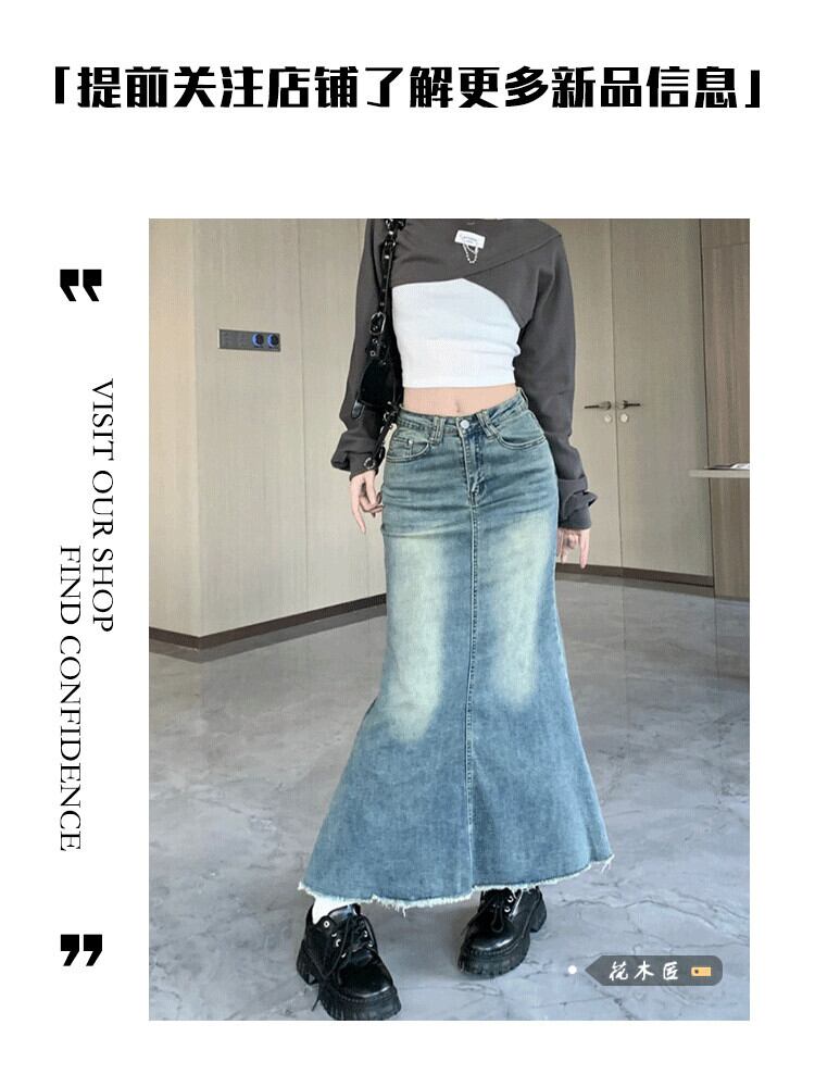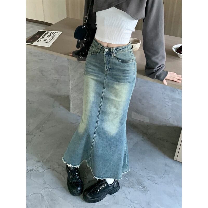レトロホットガールフィッシュテール生エッジデニムスカート女性の秋 2023 ウエスト痩身ヒップ A ラインスカート オータム 秋物 Aライン 0921994481904148