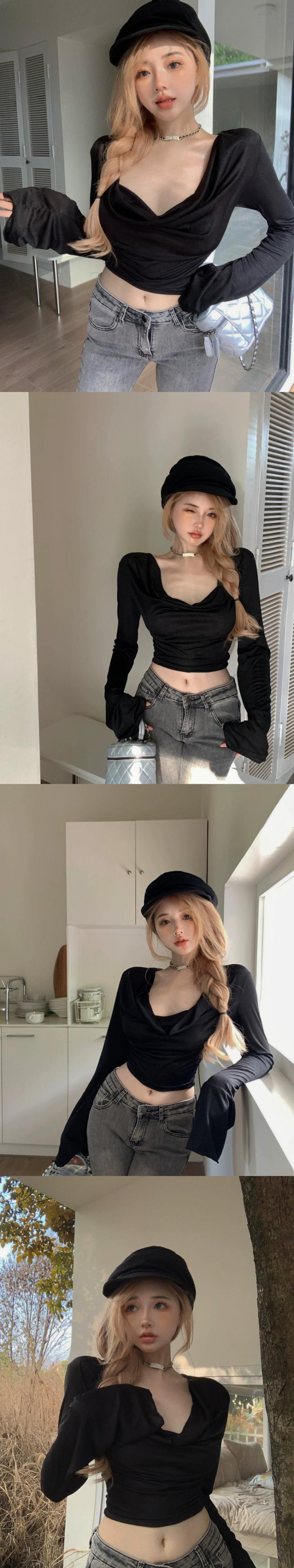 ホットデューンウェイストランドスタイル長袖 Tシャツ女性の夏の 2023 新デザインセクシーなショート日焼け止めトップ ロング サマー 夏物 0921943796927708