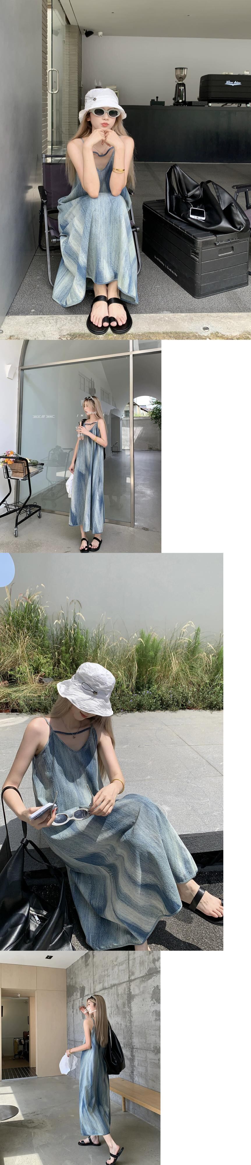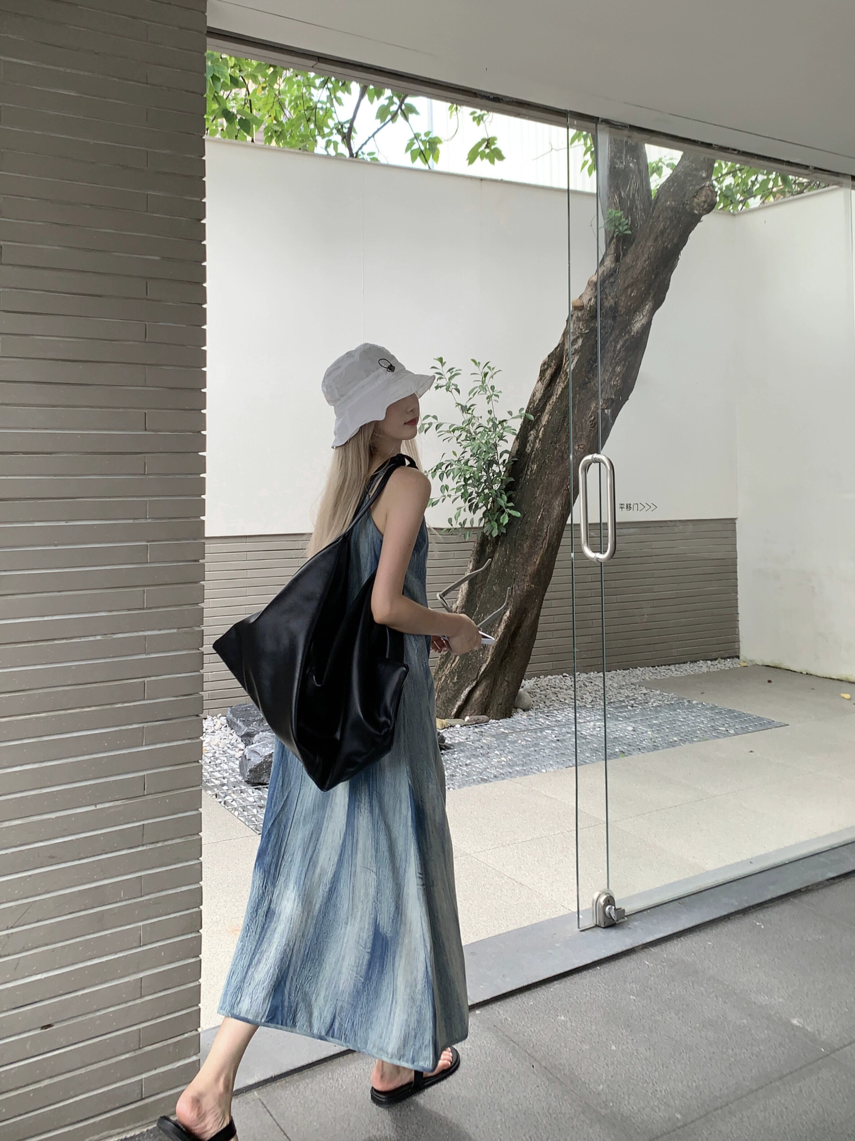 怠惰なスタイル汚れた V ネックサスペンダードレス女性の夏 2023 新しい薄いスタイル痩身 A ラインミッドレングススカート サマー 夏物 Vネック Aライン 0921952833293894