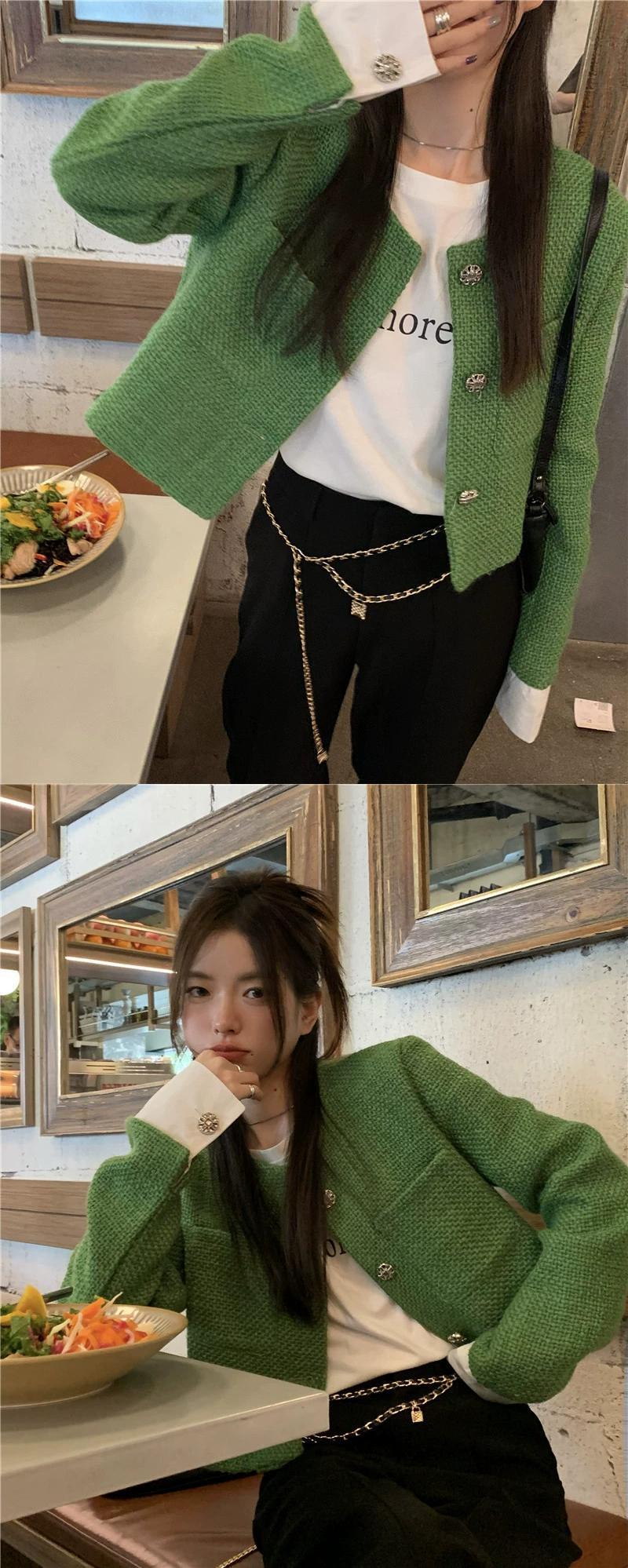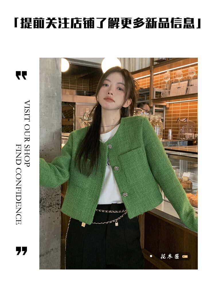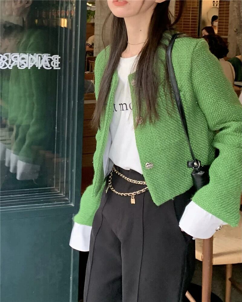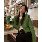 気質緑の小さな香りスタイル長袖ジャケット女性秋 2023 新しいレトロな重工業デザインスリムショートトップ ロング オータム 秋物 グリーン 0921954084189826