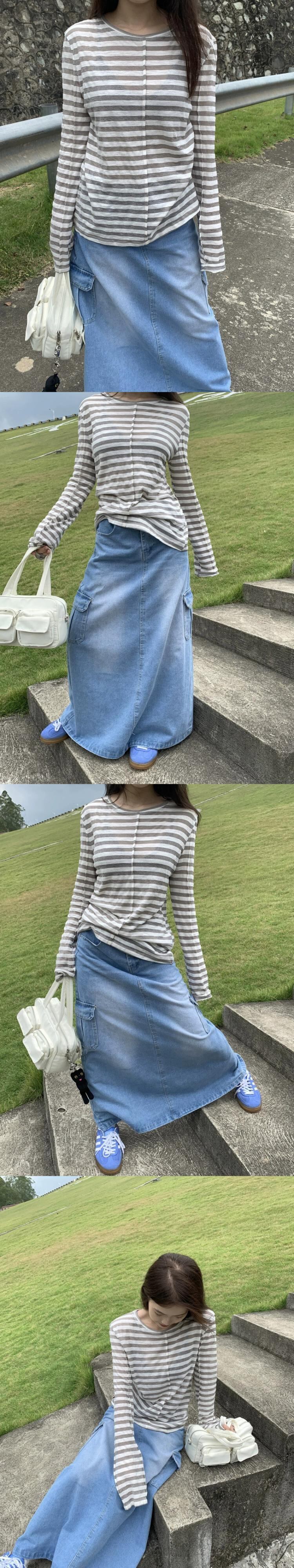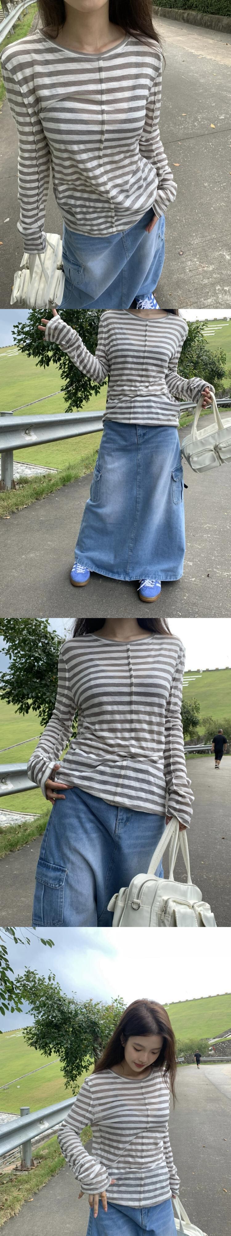 多用途カジュアルストライプ日焼け止め長袖 Tシャツ女性初秋 2023 新しいスタイルルーズでスリムなプルオーバートップトレンディ ロング オータム 秋物 0921923260629916
