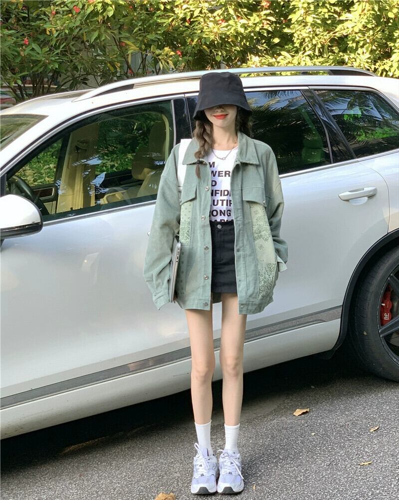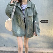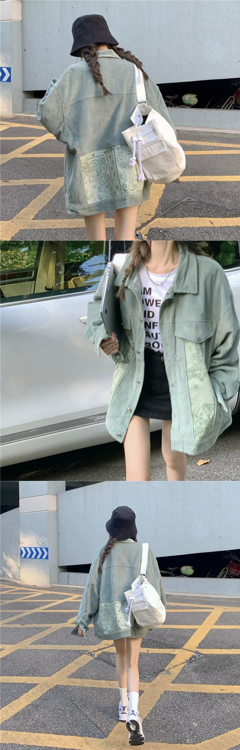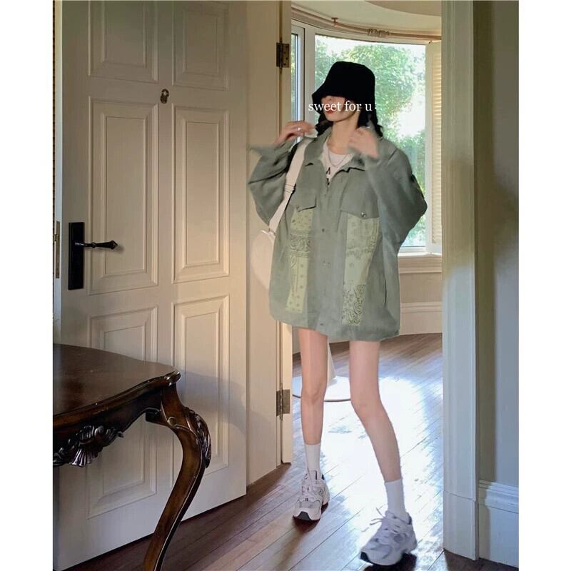 アメリカンレトロスプライシング長袖デニムジャケット女性初秋2023新しい多用途ルーズでスリムなジャケットトレンディなジャケット ロング オータム 秋物 0921949475769165