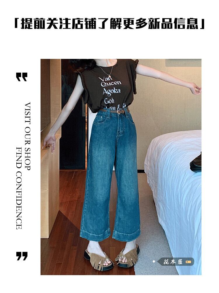 小さなハイウエストルーズ9ポイントジーンズ女性夏2023新しいレトロファッション多用途ワイドレッグパンツ サマー 夏物 0921948773170848