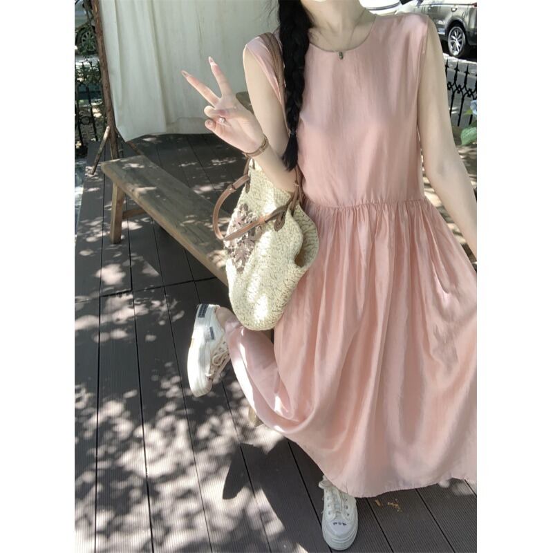 妖精優しいピンクの甘いノースリーブドレスの女性の夏 2023 新しいスタイルのルーズでスリムなベストスカート 大人ガーリー スウィート キュート カジュアル サマー 夏物 0921914073470307