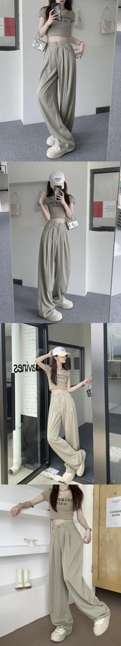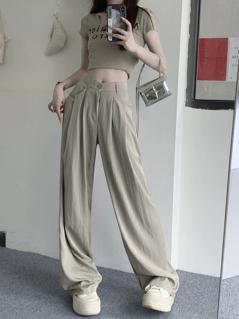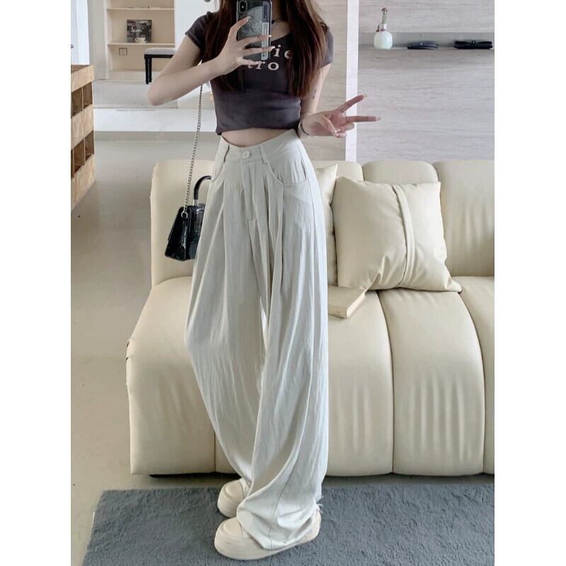 -ウエストプリーツ痩身ドレープカジュアルパンツレディース2023年夏新デザイン万能ルーズワイドレッグフロアレングスパンツ サマー 夏物 0921960858768022