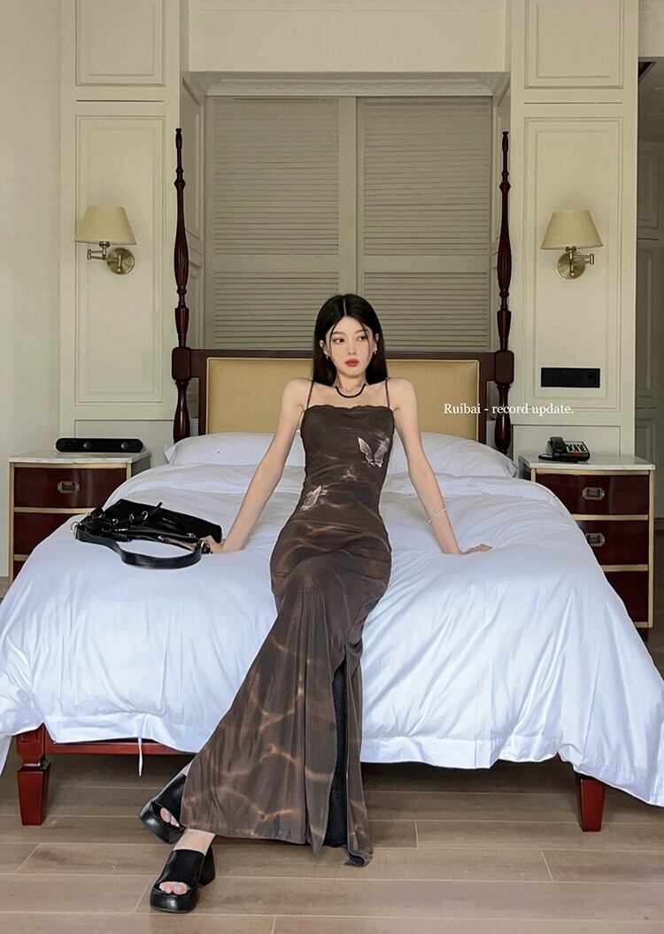 セクシーなストラップレスチューブトップドレス女性の夏の 2023 新しいスリムフィットヒップハグスリットロングスカート サマー 夏物 0921961925108903