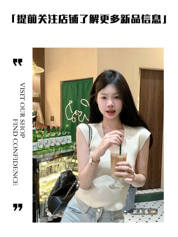 小さな飛行袖気質 u ネックスリムチョッキセーター女性の夏の 2023 新しい純粋な欲望痩身ショートトップ サマー 夏物 ピュア 0921918678101165