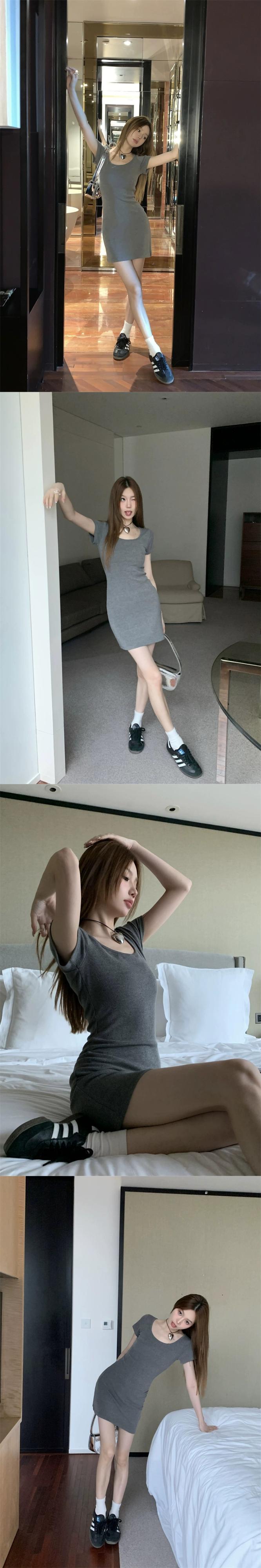 黒弾性タイト半袖ドレスの女性の夏の 2023 新しいショートスカートセクシーなスリムヒップハグスカート ブラック エラスティック 伸縮 サマー 夏物 0921923460453844
