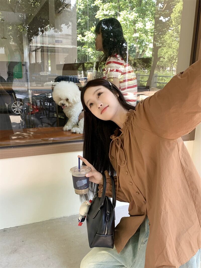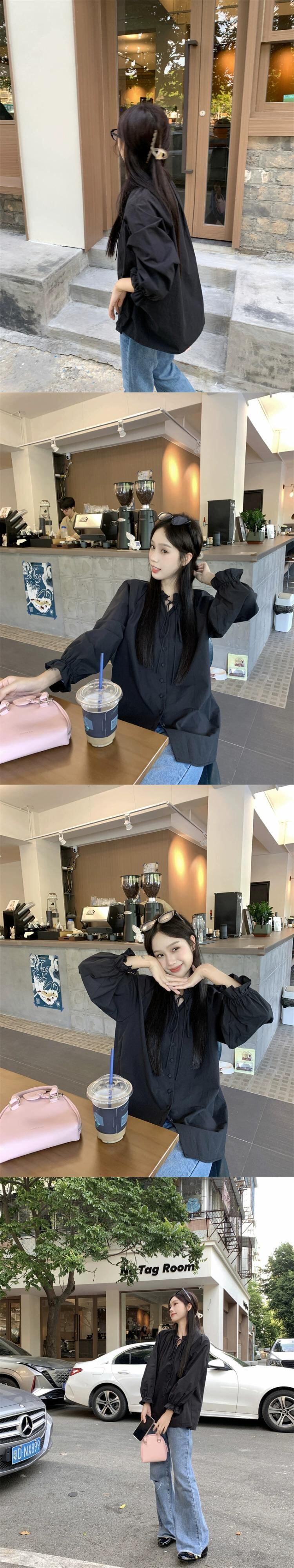 穏やかで優しいスタイルの多用途長袖無地シャツ女性 2023 秋の新しいスタイルのルーズでスリムなカーディガンシャツ ロング オータム 秋物 ソリッドカラー 0921955394089651