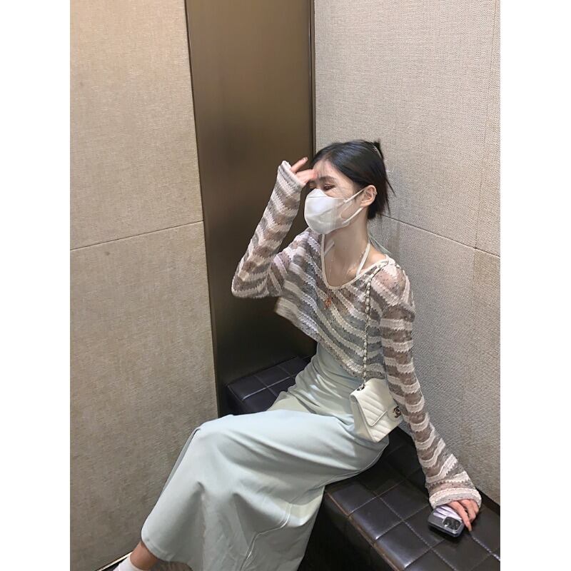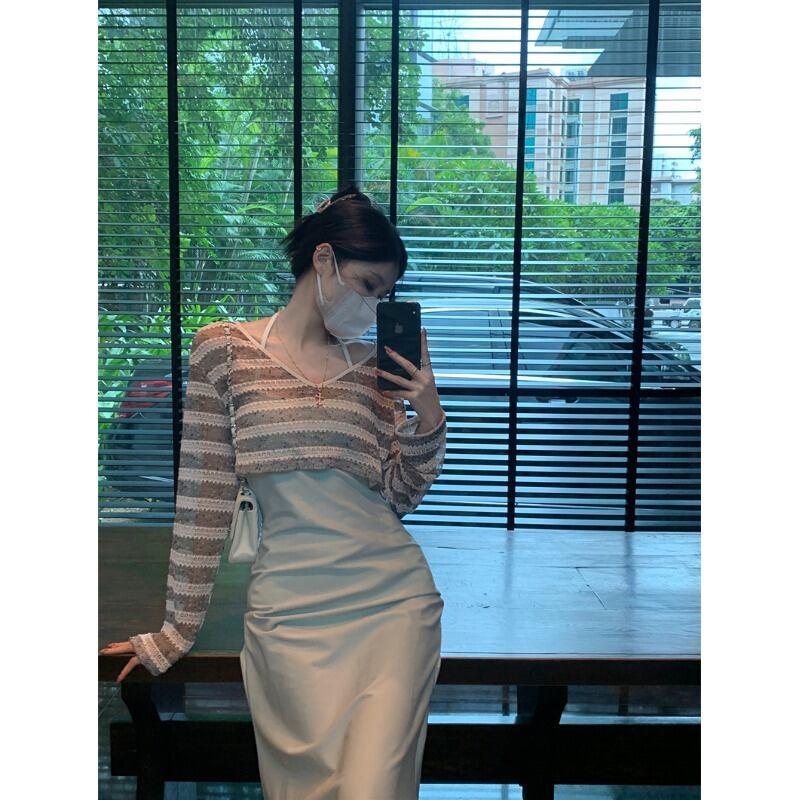 純粋な欲望のファッションスーツの女性の夏の 2023 新しい長袖ブラウストップ痩身ホルターネックドレス 2 点セット ロング サマー 夏物 0921986188747118