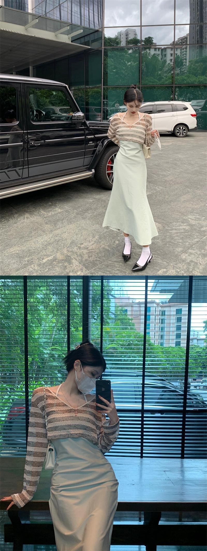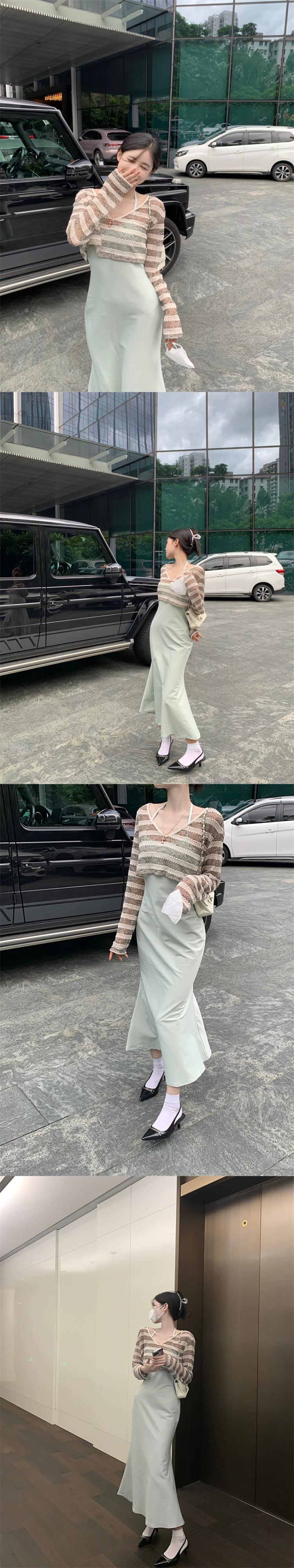 色:ホルターネックフィッシュテールドレス,ストライプツーピースブラウス
