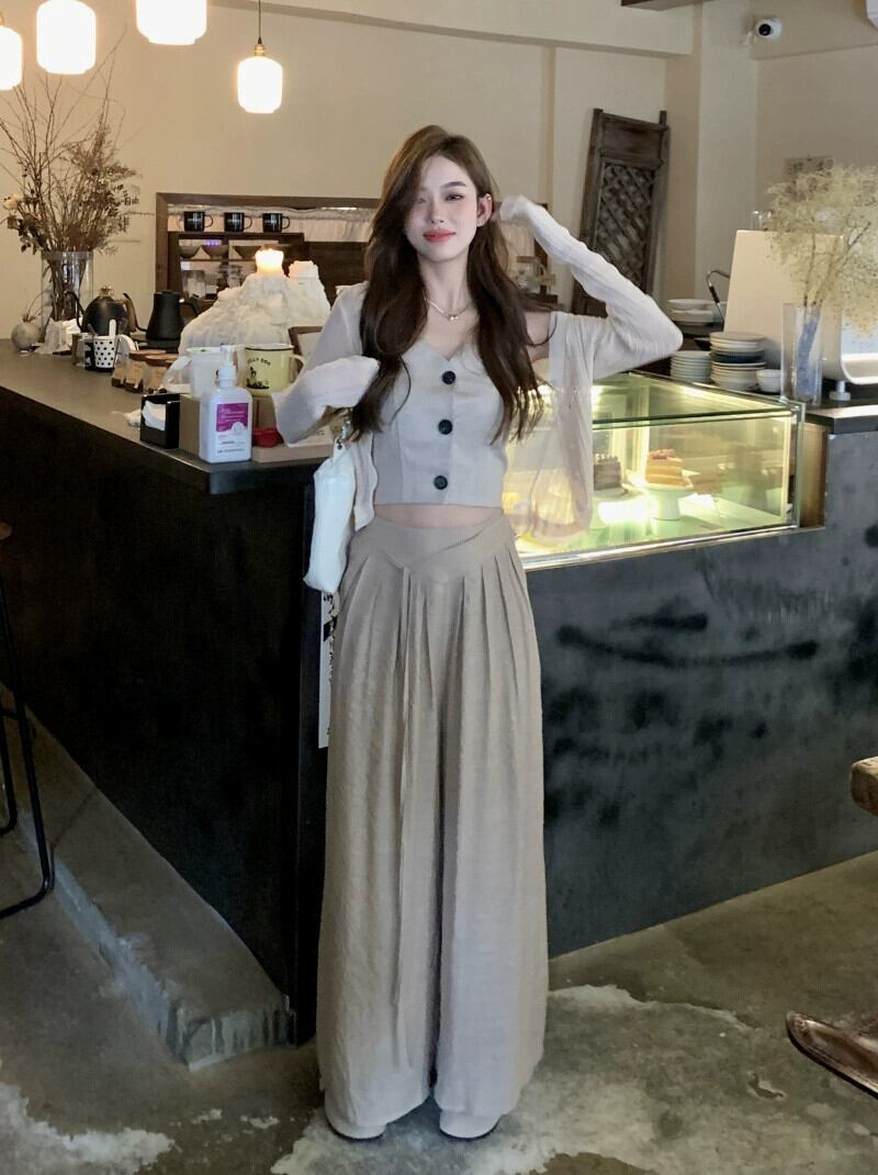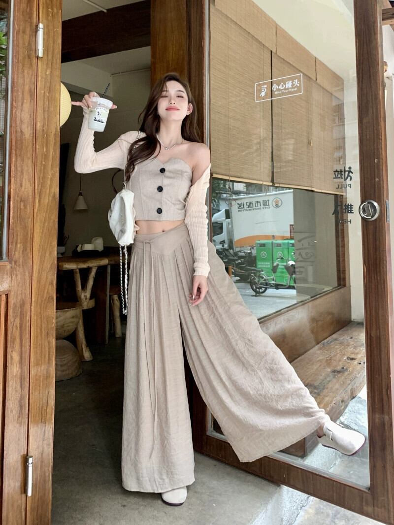 色:チューブトップ,ワイドレッグパンツ,カーディガン