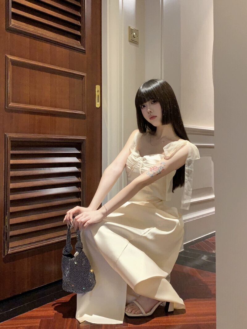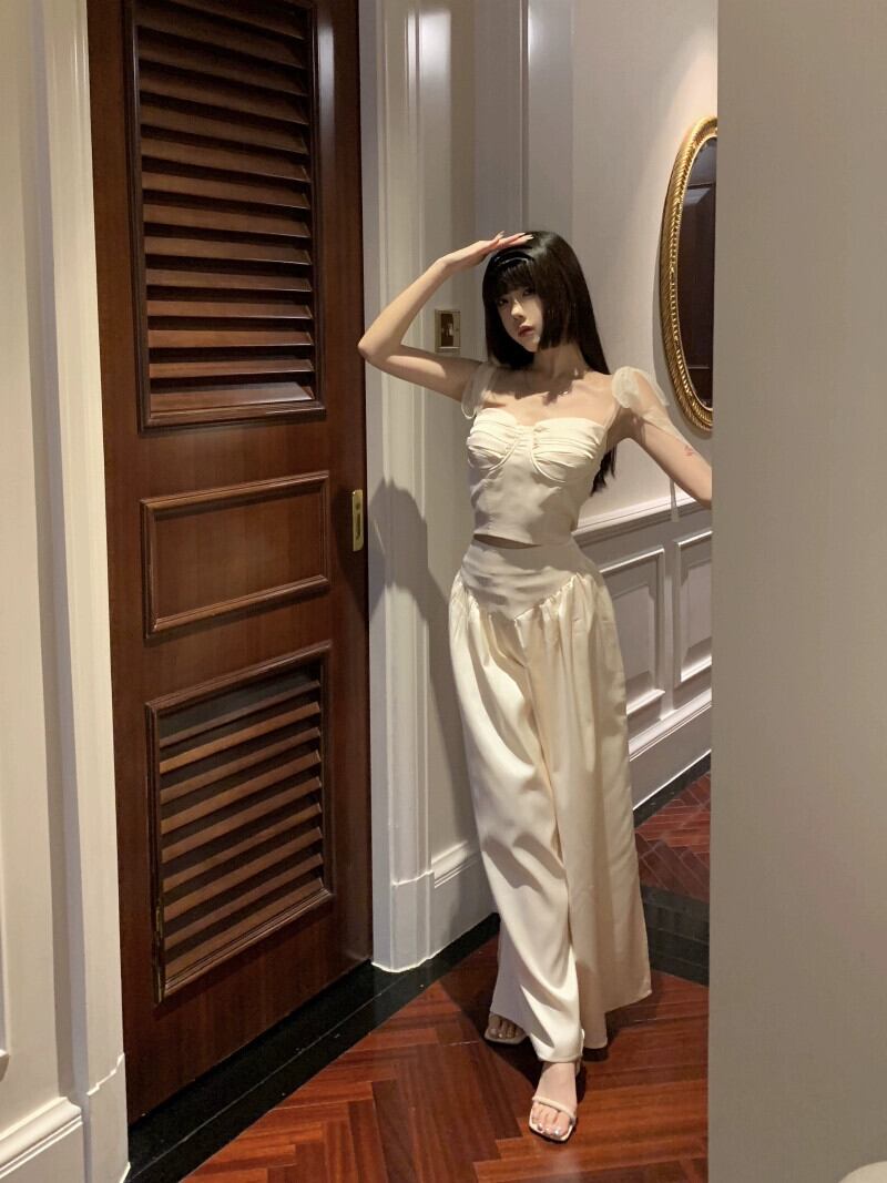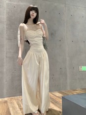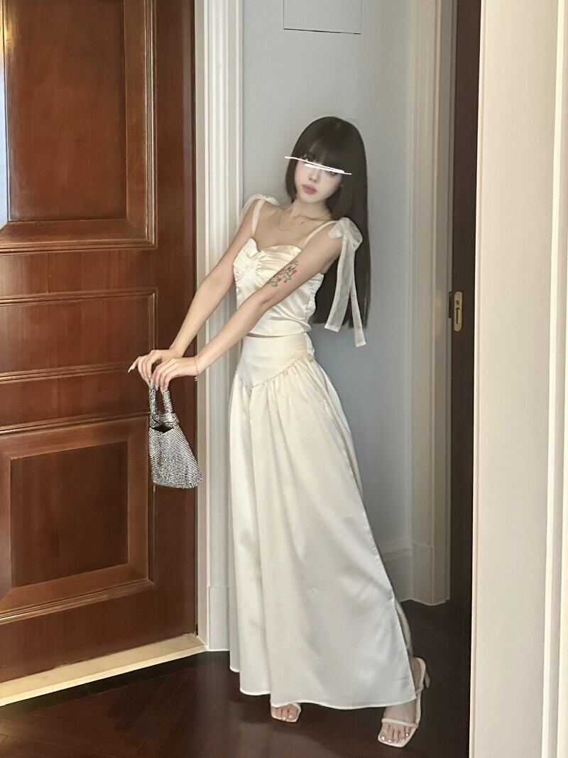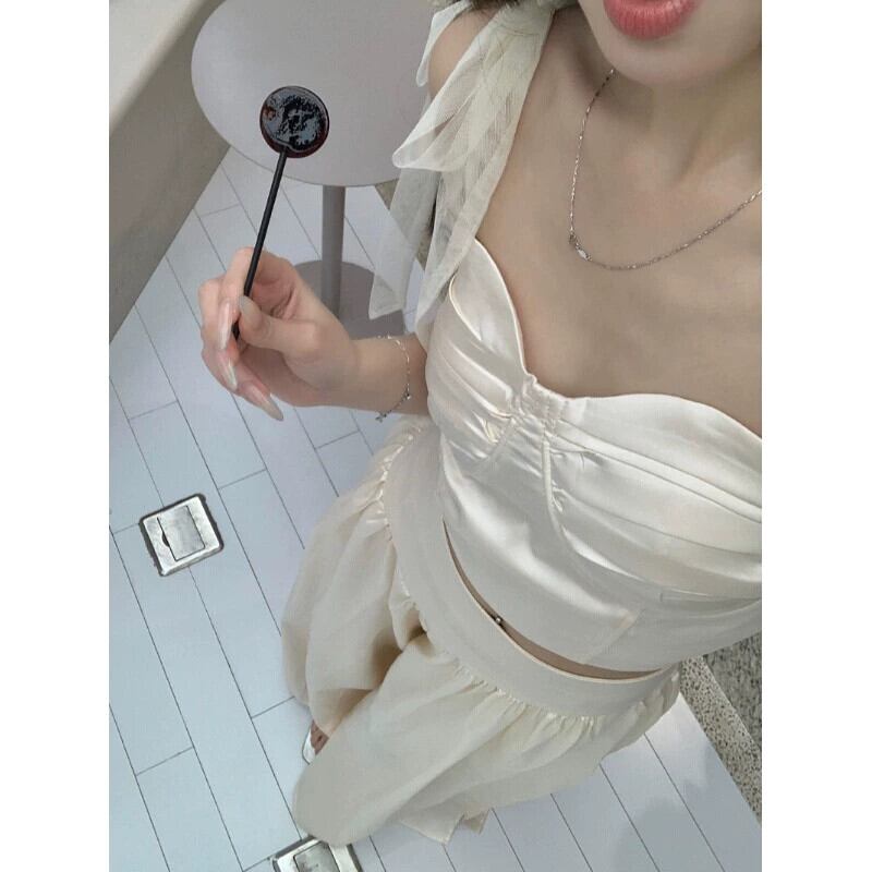 ファッションスーツの女性の夏 2023 新しいショートストラップサスペンダーハイウエストスリムスカート 2 点セット ハイウェスト サマー 夏物 0921921351012221