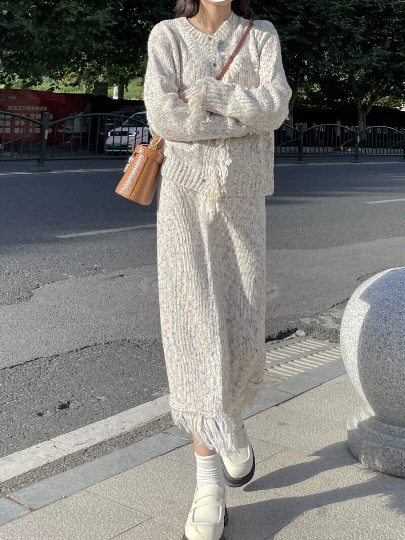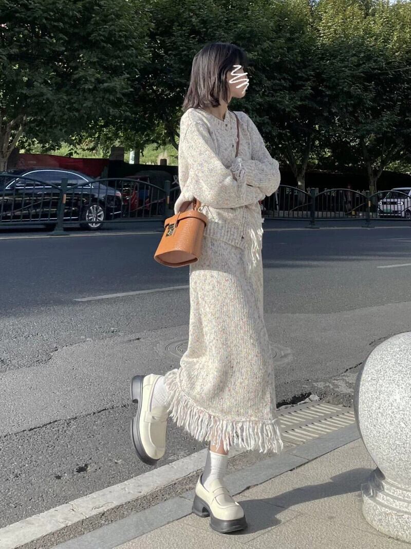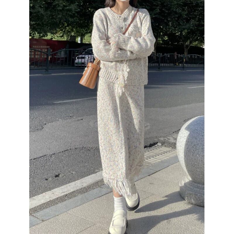 気質小さな香りのスタイルスーツスカート女性秋 2023 新しい電話セータージャケット痩身スカートツーピーストレンディなセット オータム 秋物 0921927331750746