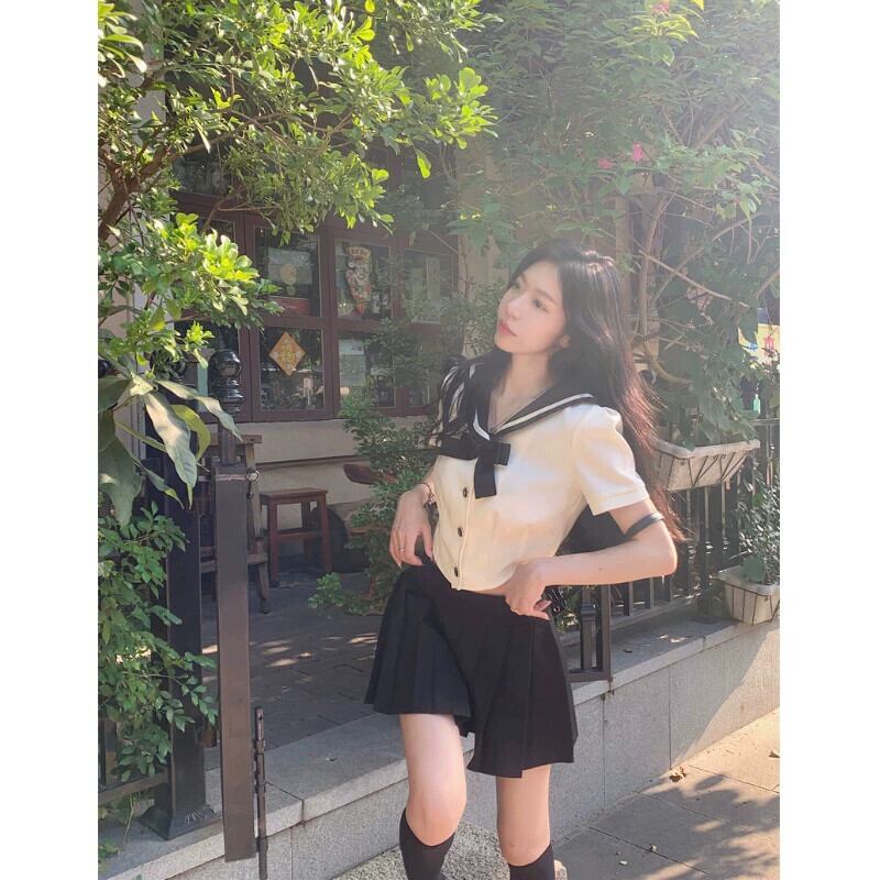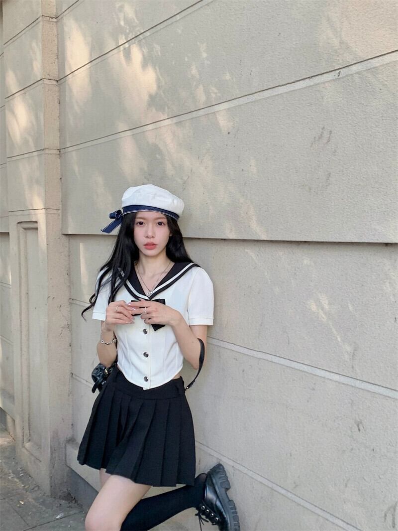 スタイルスーツの女性の夏 2023 新しいネイビーカラー半袖シャツハイウエストスリムプリーツスカート 2 点セット ハイウェスト サマー 夏物 0921937670443715