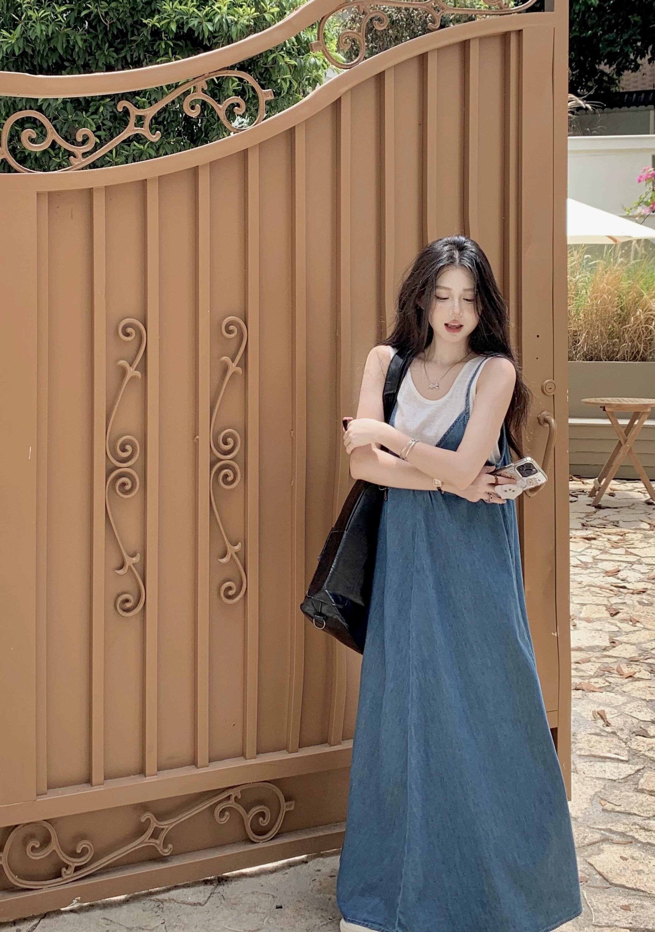 フレンチスタイルのデニムサスペンダードレスの女性の2023年夏の新しいデザインのルーズでスリムなロングスカート サマー 夏物 0921937402308569
