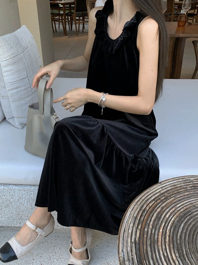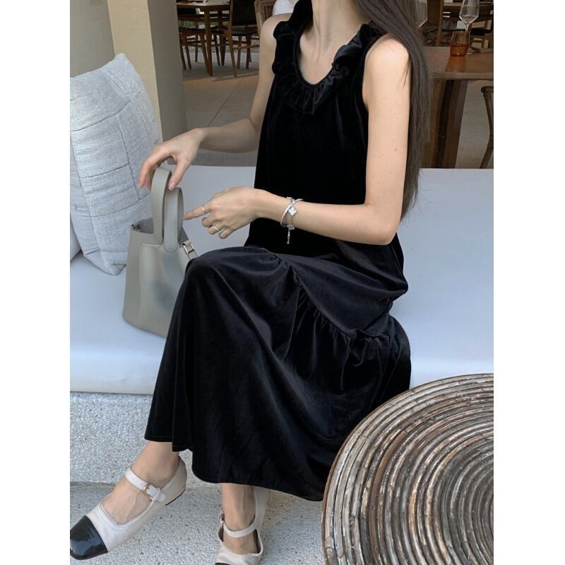 -エンドベルベットラウンドネックベストドレス女性夏 2023 新しい多目的痩身ミッドレングススカート サマー 夏物 Oネック 0921928622720096