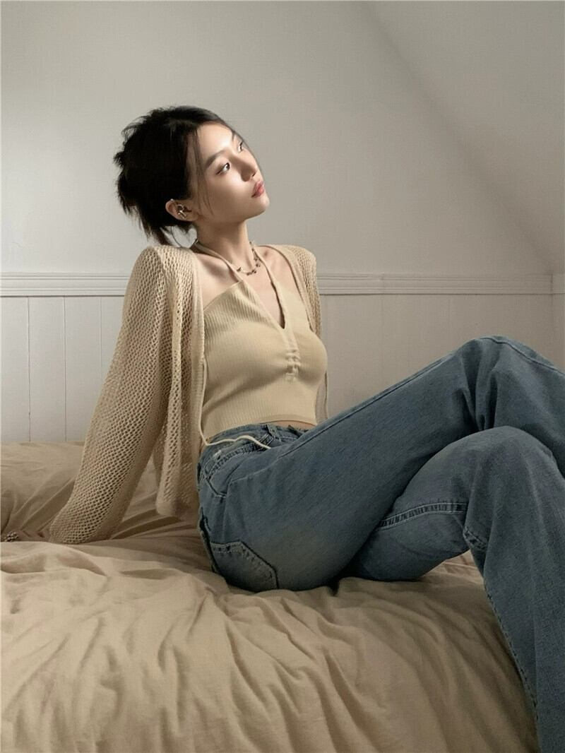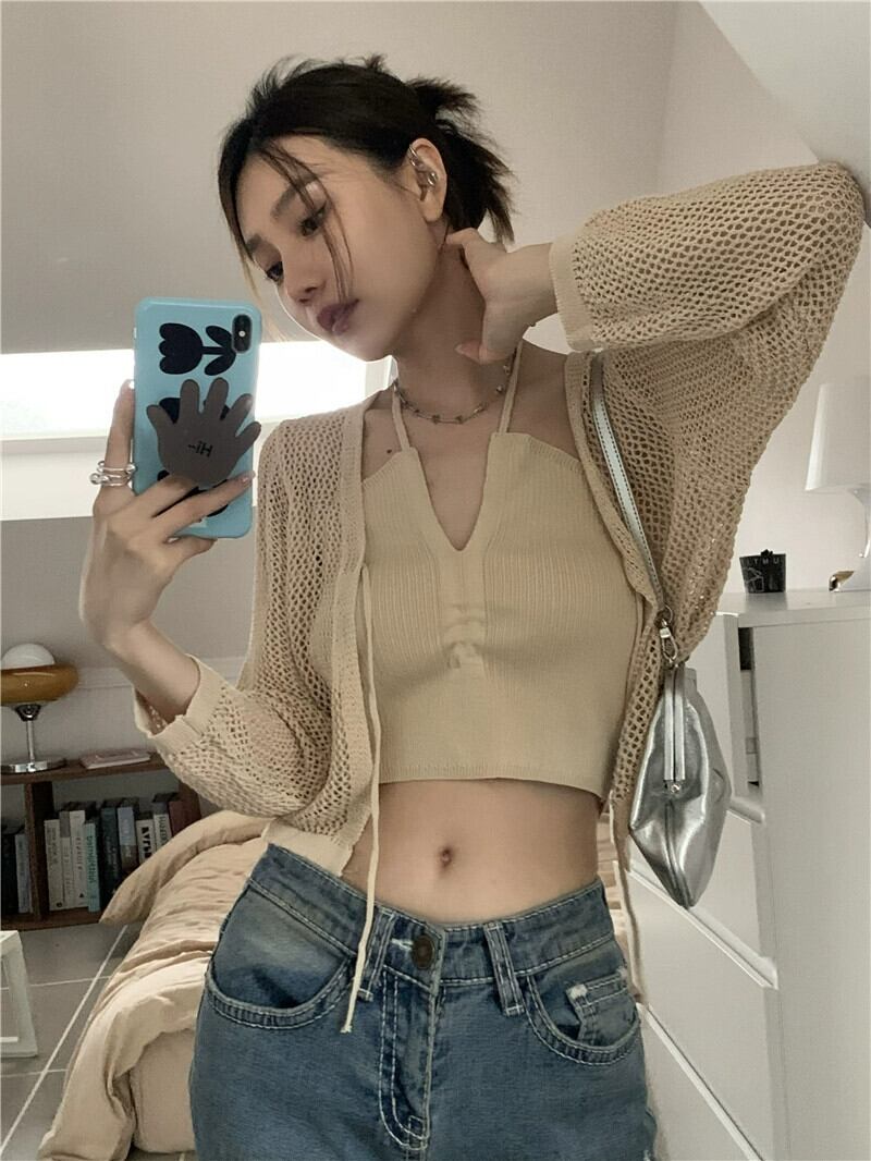 ed 中空ニットカーディガン女性の夏 2023 新しい薄い長袖日焼け止めシャツ多用途ショートトップ ロング サマー 夏物 0921939345852769