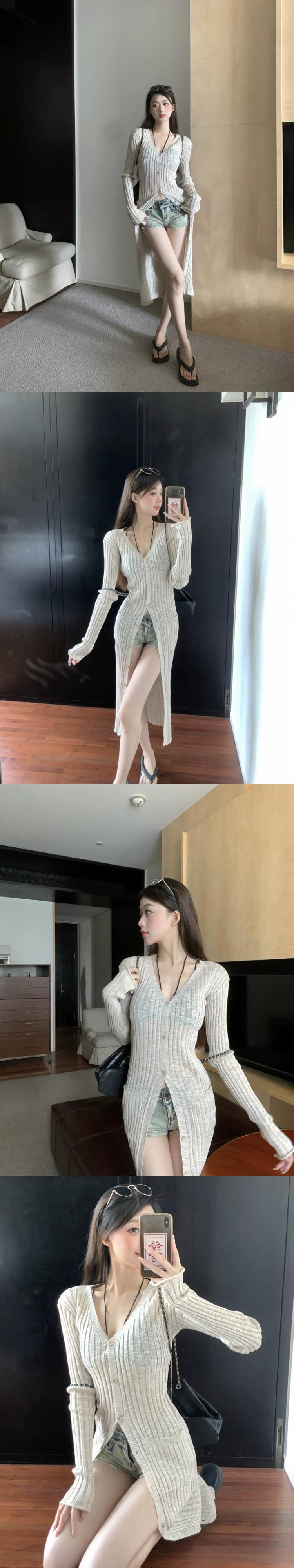 純粋な欲望スタイル V ネック長袖日焼け止めセーター女性の夏の 2023 新しいスリムフィットロングカーディガントップ サマー 夏物 Vネック 0921919508453638