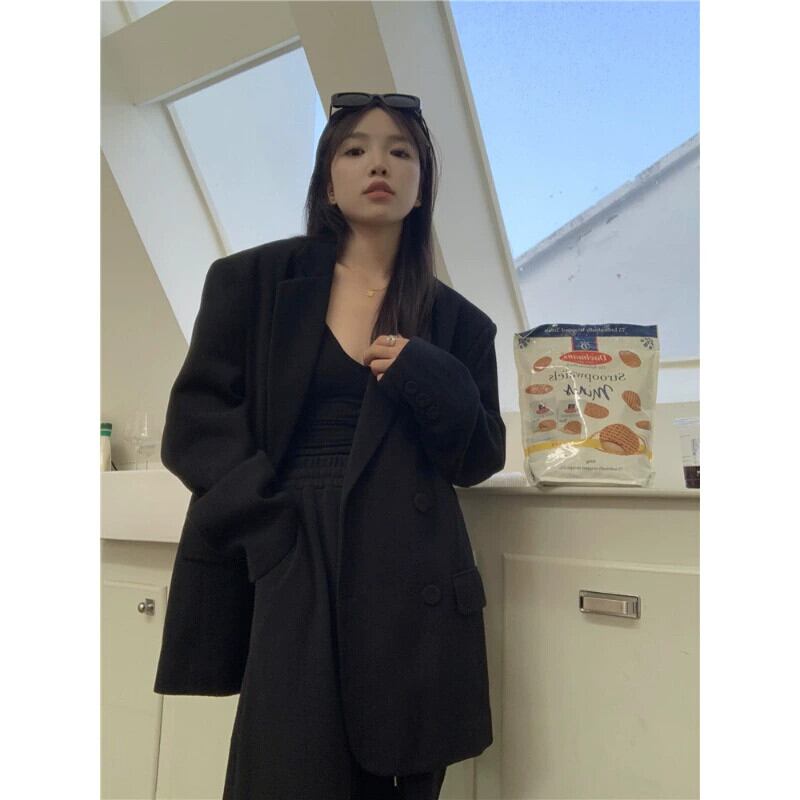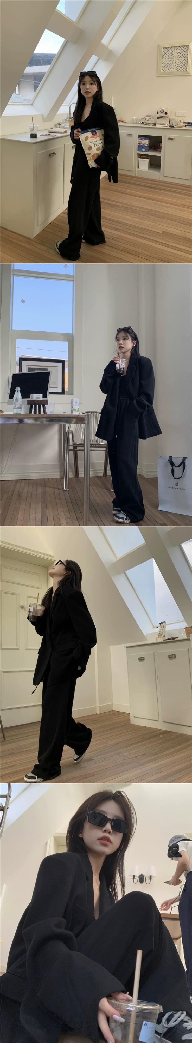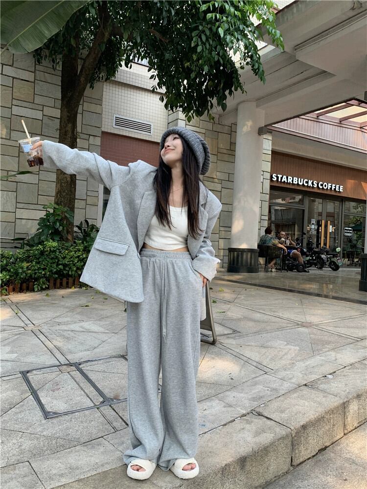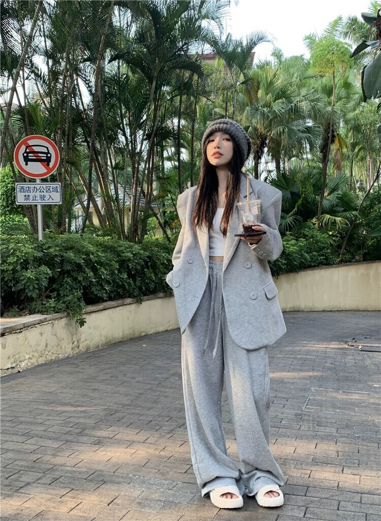 気質カジュアルスーツ女性初秋 2023 新しい長袖スーツジャケットハイウエスト痩身ワイドレッグパンツ 2 点セット ロング オータム 秋物 0921968842179425