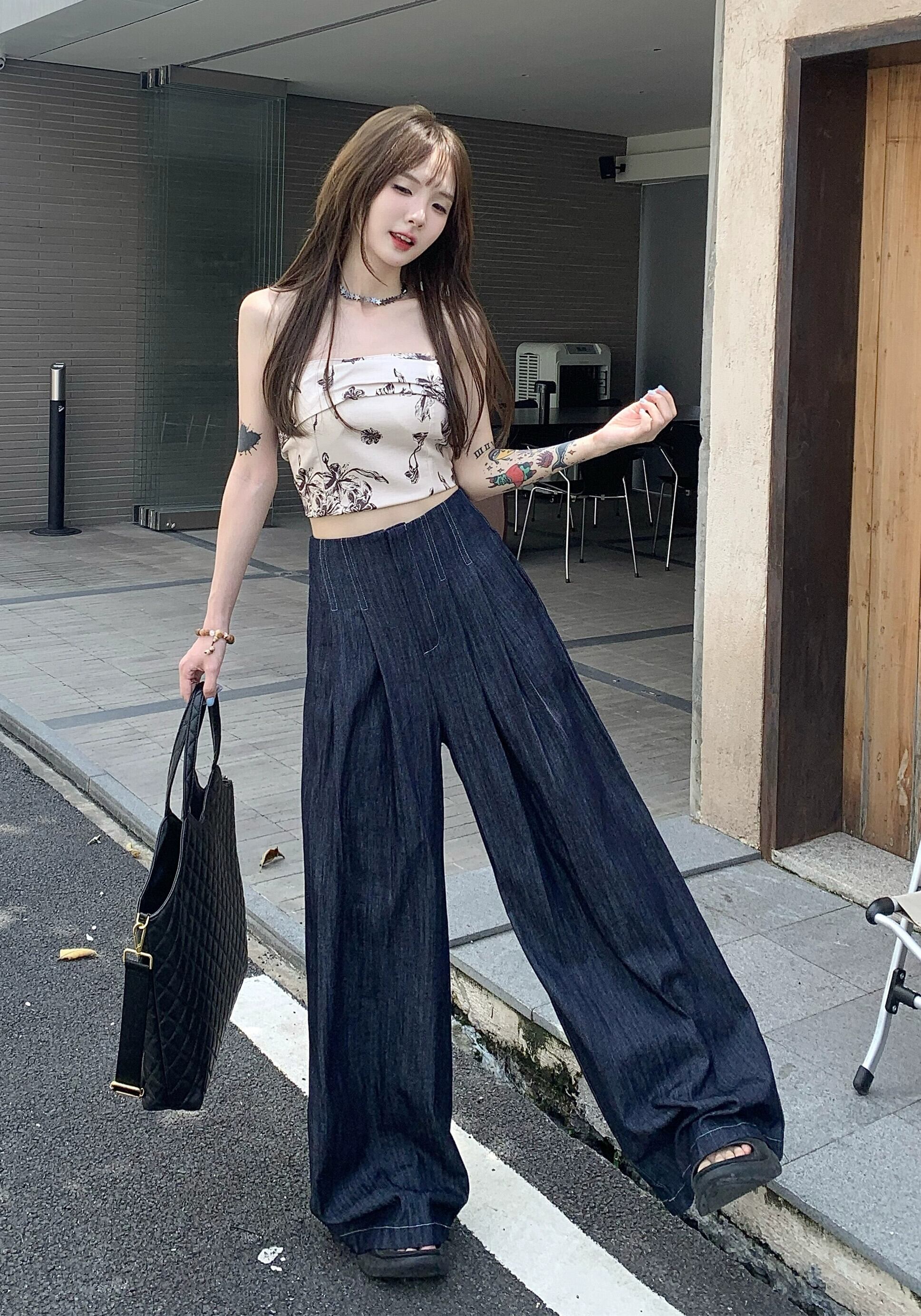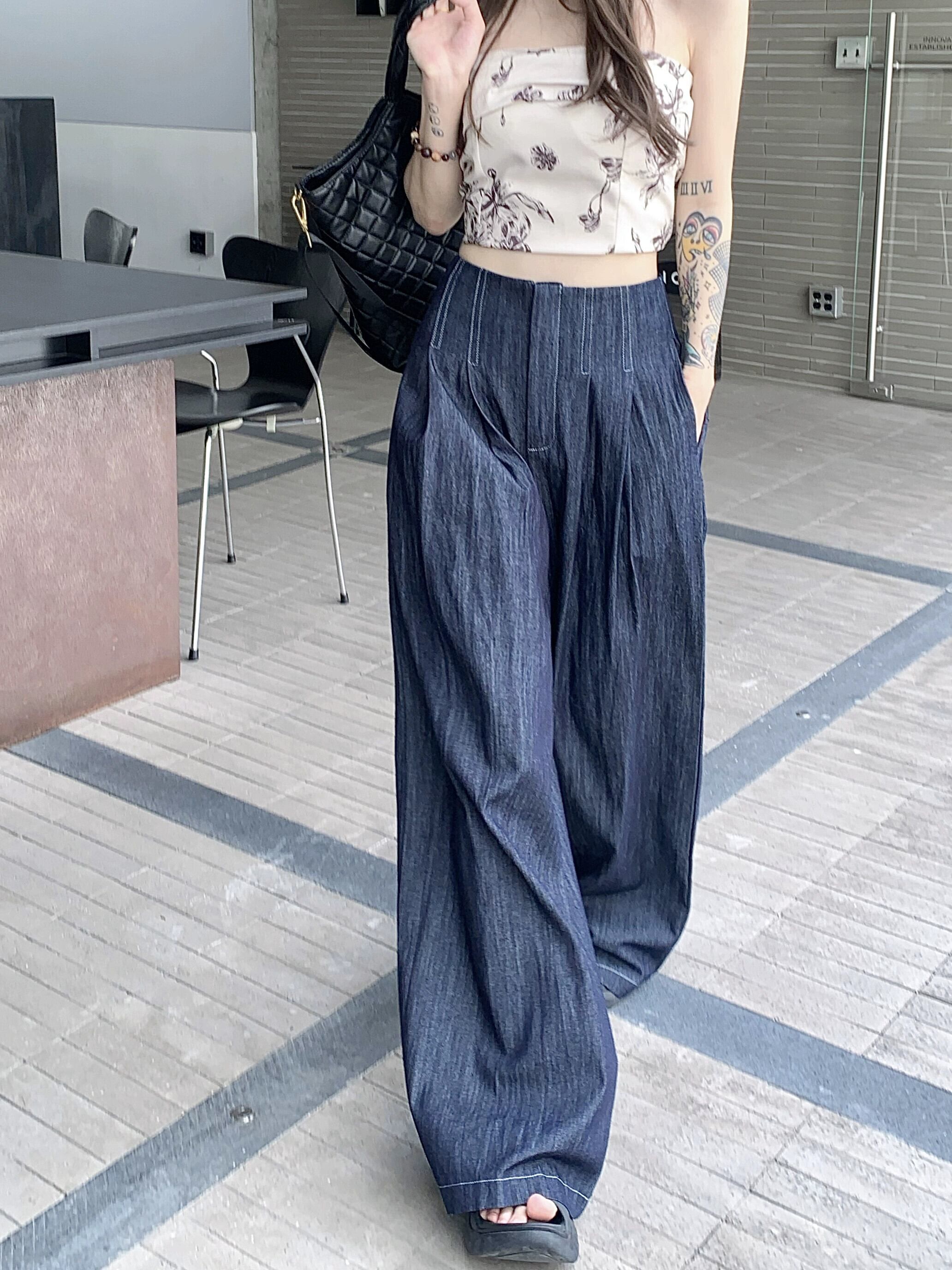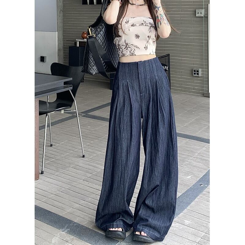 レトロファッション多用途ジーンズ女性夏 2023 新しいハイウエストデザインルーズ痩身ワイドレッグパンツ サマー 夏物 0921979286193245