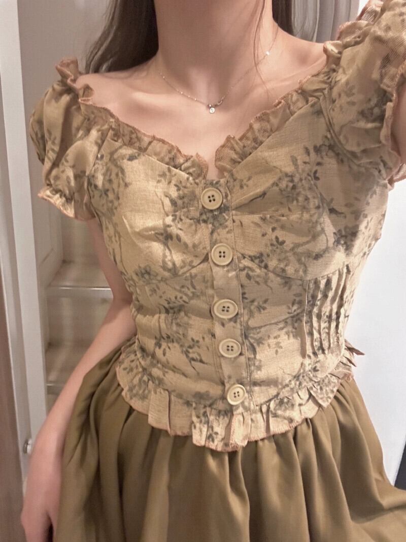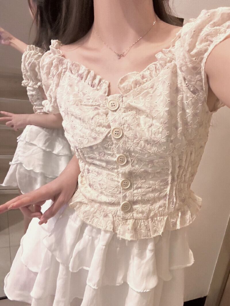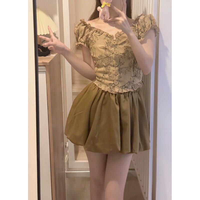 フレンチレトロな気質 V ネックシャツ女性の夏 2023 新しい y パフ半袖スリムクロップトップ サマー 夏物 Vネック 0921916049003966