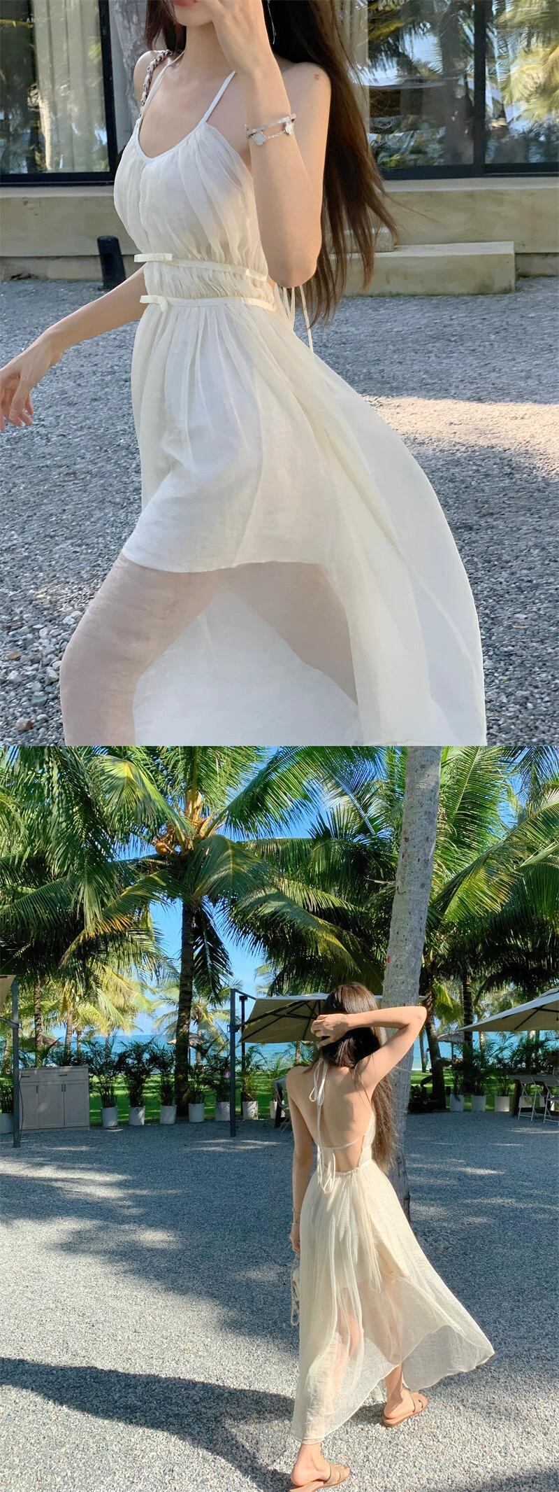 妖精背中の開いたホリデースタイルホルタードレス女性の夏 2023 セクシーな背中の開いたストラップウエストドレス サマー 夏物 09219242608489