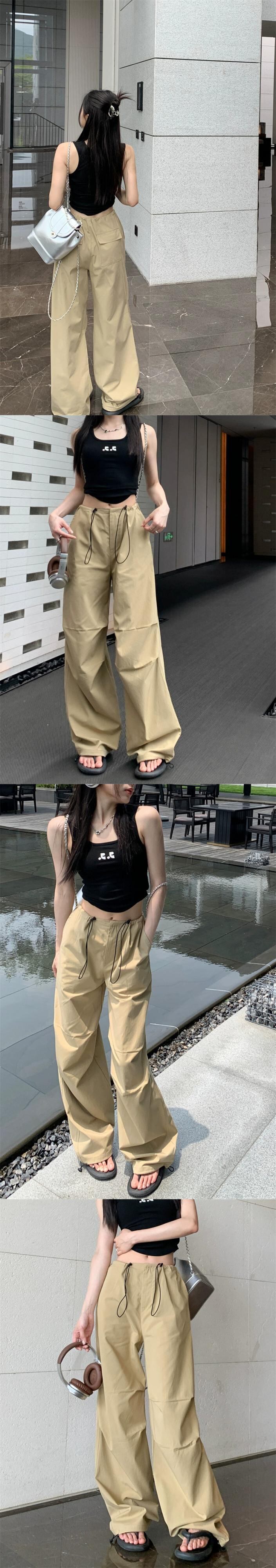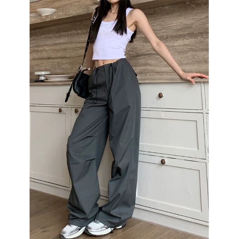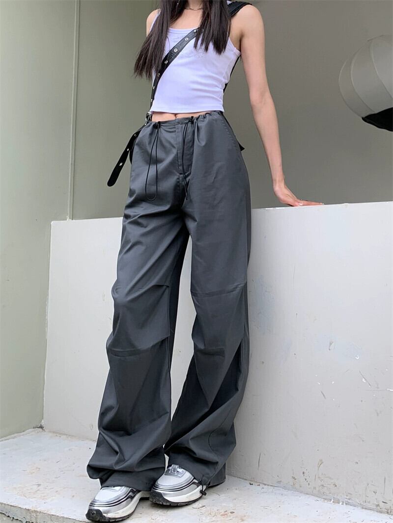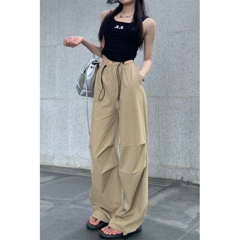 薄いハイウエストスリム巾着カジュアルパンツ女性の夏 2023 新しい多用途気質ルーズワイドレッグカーゴパンツ サマー 夏物 0921911617259799