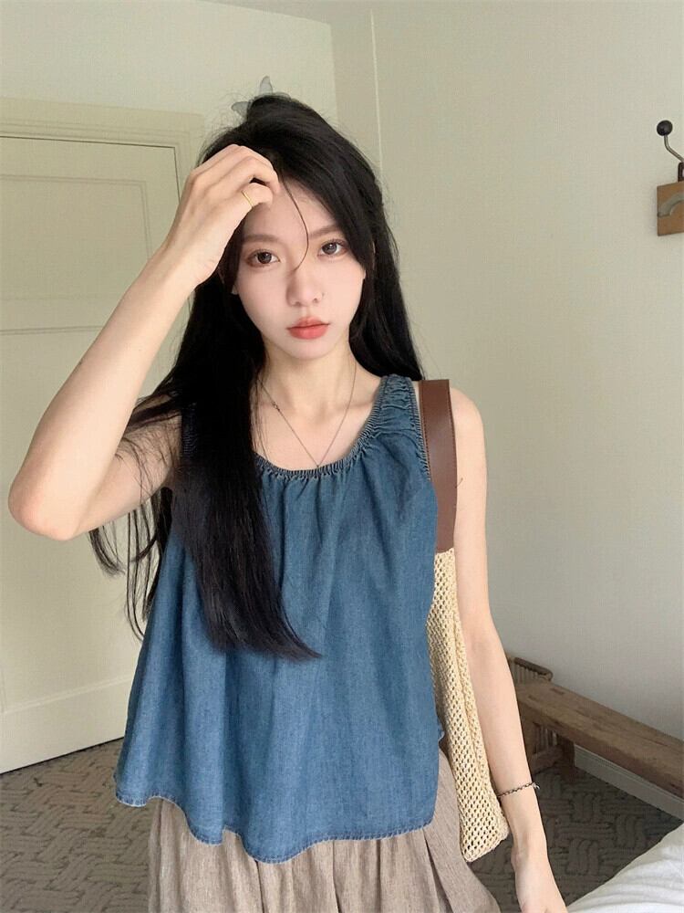 レトロオールマッチデニムキャミソールレディース2023年夏新作ゆったりスリムデザインノースリーブトップ サマー 夏物 0921930313946027