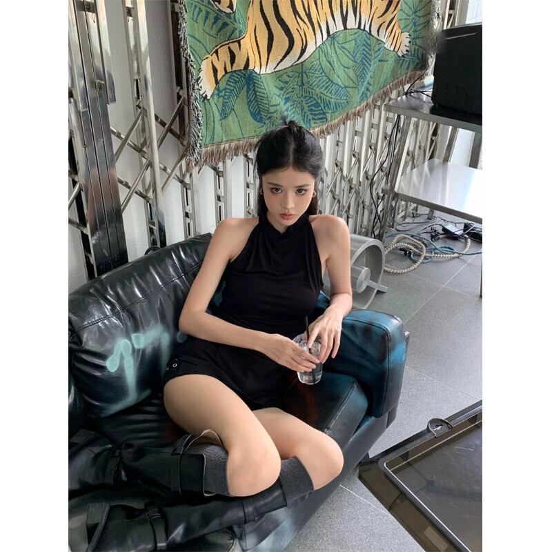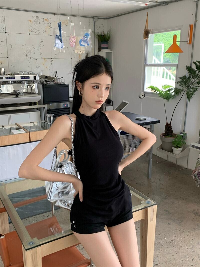 ホットブラックホルターネックキャミソール女性の夏の2023新しい気質スリムスリムアウターノースリーブトップ サマー 夏物 0921972519129346