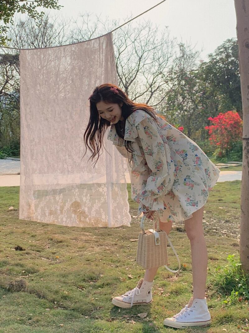 フレンチスイートフリル花柄長袖シャツ レディース 2023秋 ベルスリーブ ルーズスリムシャツ ロング 大人ガーリー スウィート キュート カジュアル オータム 秋物 0921971564574315