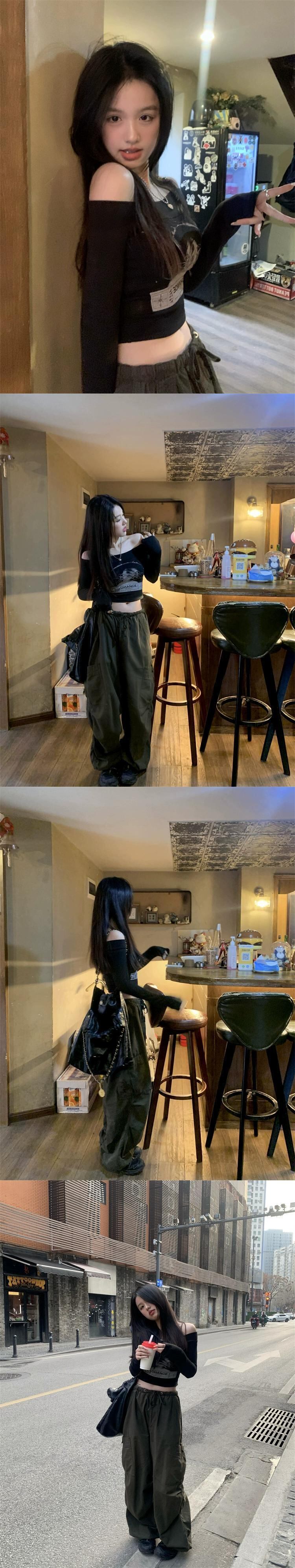 アメリカンデザインプリント長袖 Tシャツ女性 2023 秋の新しいセクシーなワンラインカラースリムショートトップ ロング オータム 秋物 0921981119514374