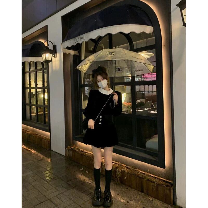 黒のレトロな小さなフレグランススーツ女性初秋 2023 新しいベルベットトップダイヤモンドボタン痩身ショーツツーピーストレンディなセット ブラック オータム 秋物 ブルマー 0921910194708412