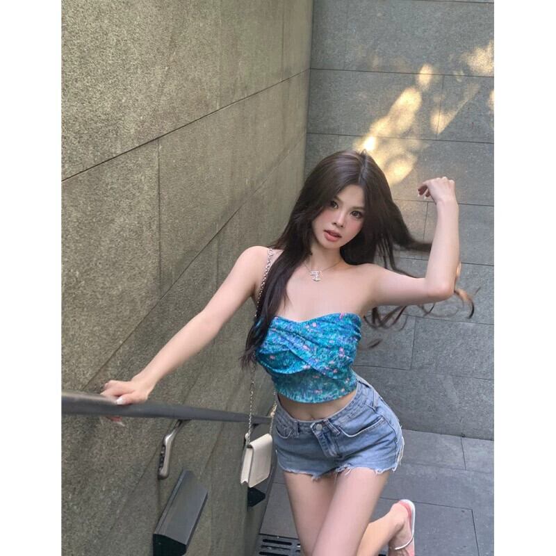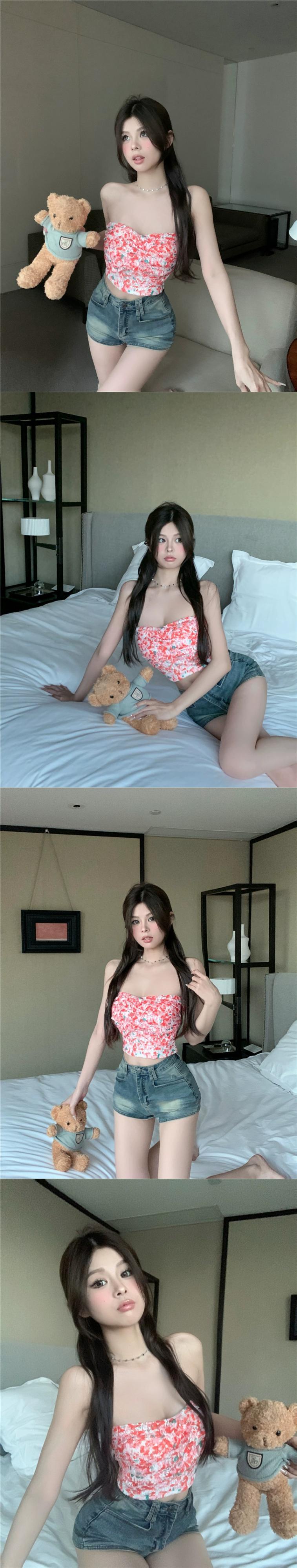 甘くてセクシーな花柄チューブトップ女性の夏 2023 新しい背中の開いたスリム痩身トップ胸パッド付き 大人ガーリー スウィート キュート カジュアル サマー 夏物 0921999956141179