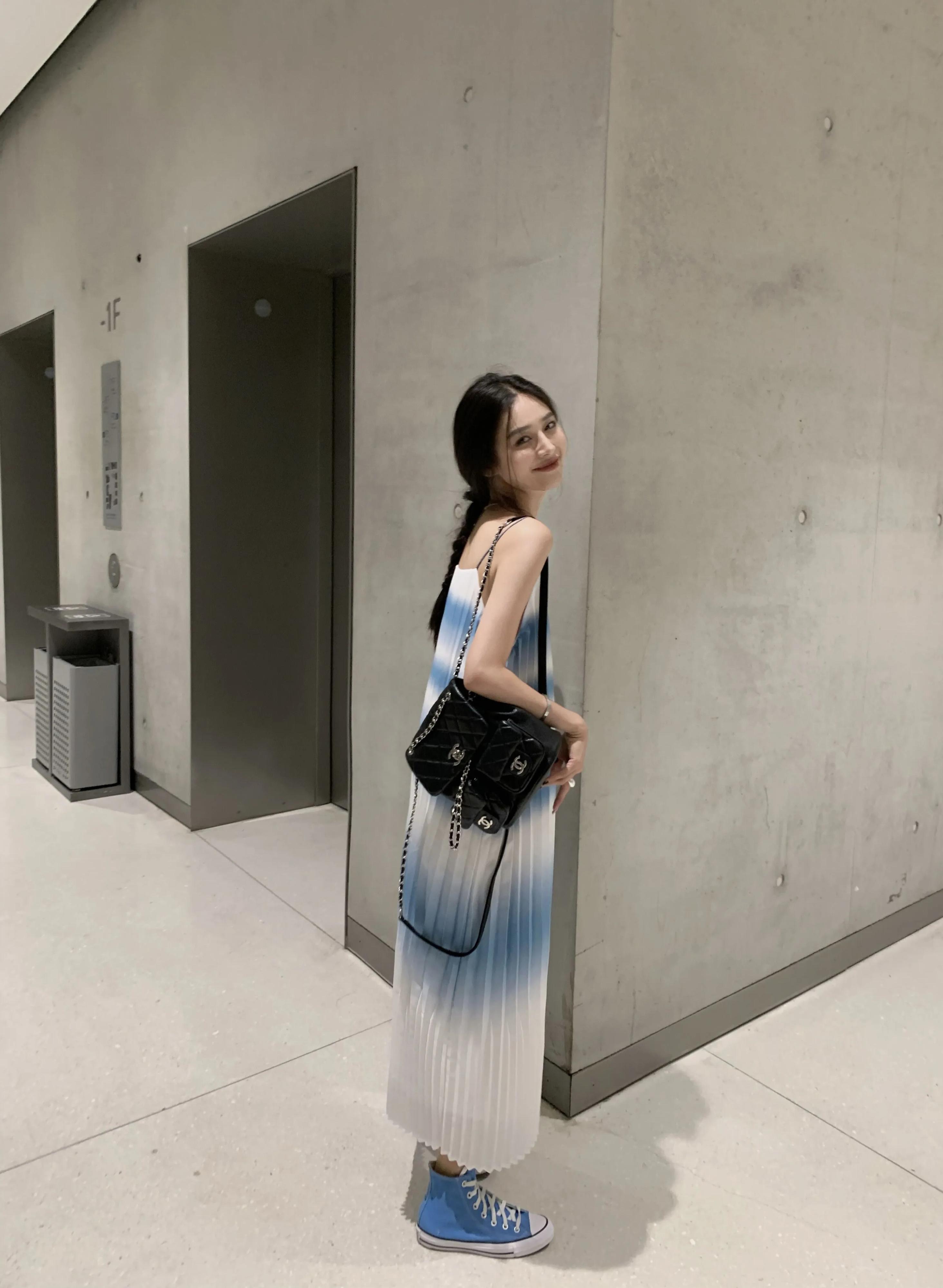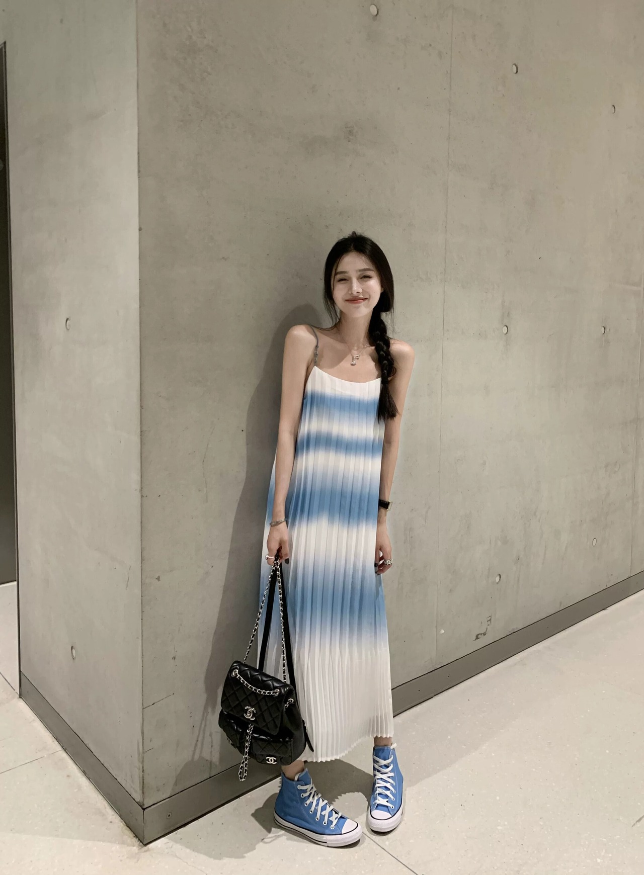 フレンチグラデーションブルーサスペンダードレスの女性の夏の2023新しい気質痩身ミドル丈スカート サマー 夏物 0921945356851270
