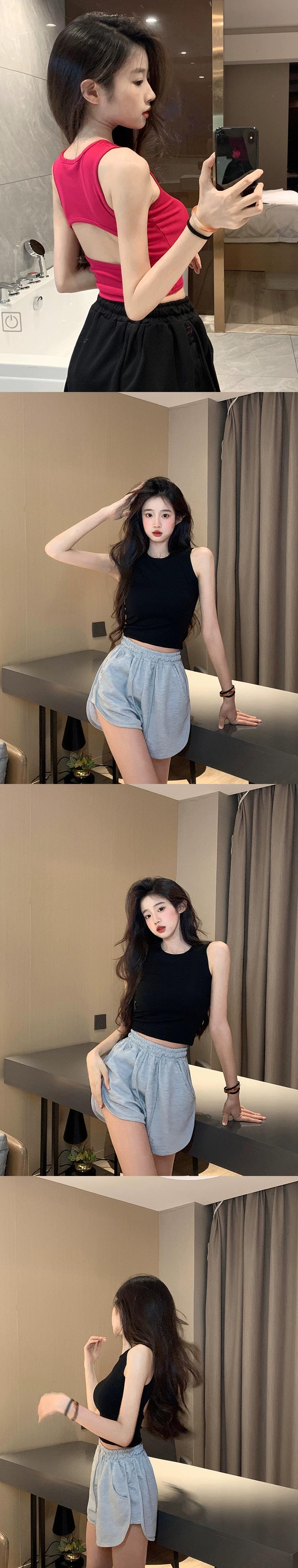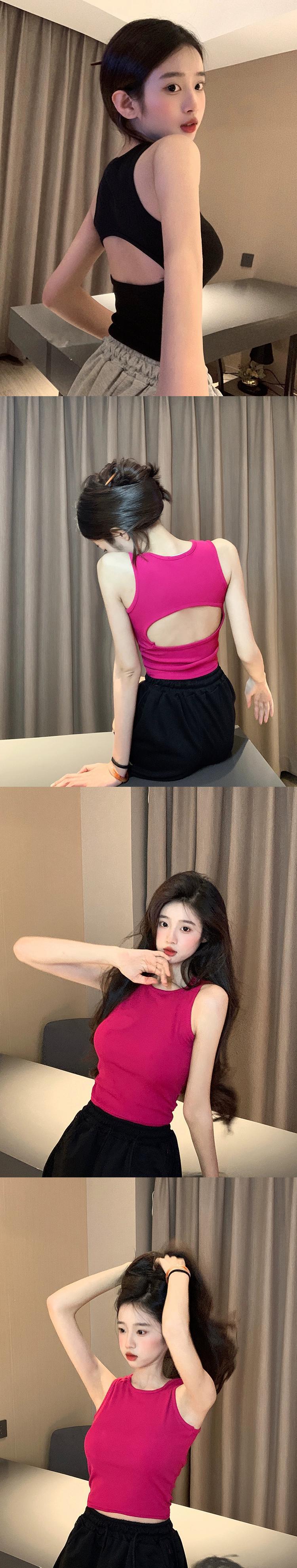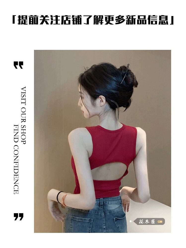 セクシーな背中の開いたデザインノースリーブベスト女性の夏の 2023 新しい痩身ショートトップ サマー 夏物 0921951463239556