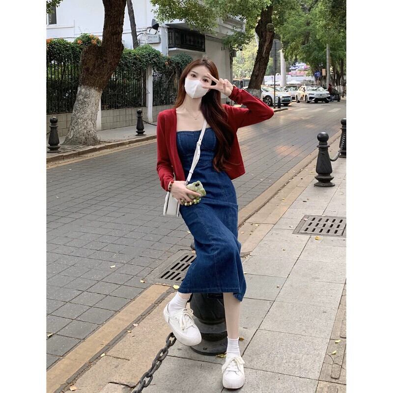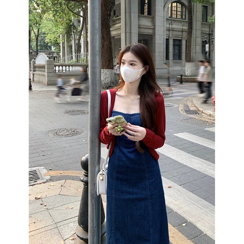 フレンチレトロスタイルデニムサスペンダードレス女性の夏2023新しいスタイルミッドレングススリムで多用途なスカート サマー 夏物 0921929622302746