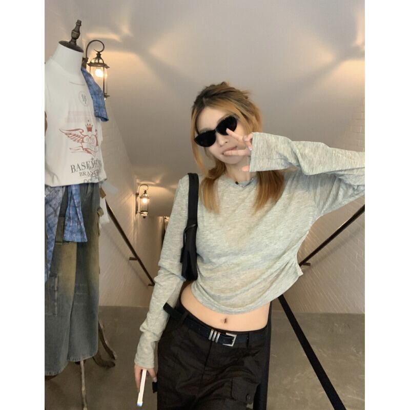 シックなプリーツ薄い日焼け防止長袖 Tシャツレディース夏 2023 新しい多目的ショートスリムスリムトップ ロング サマー 夏物 0921998365163009