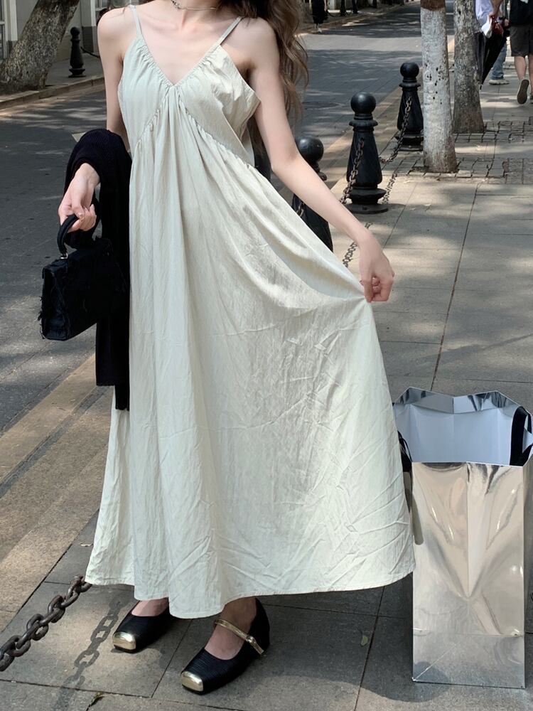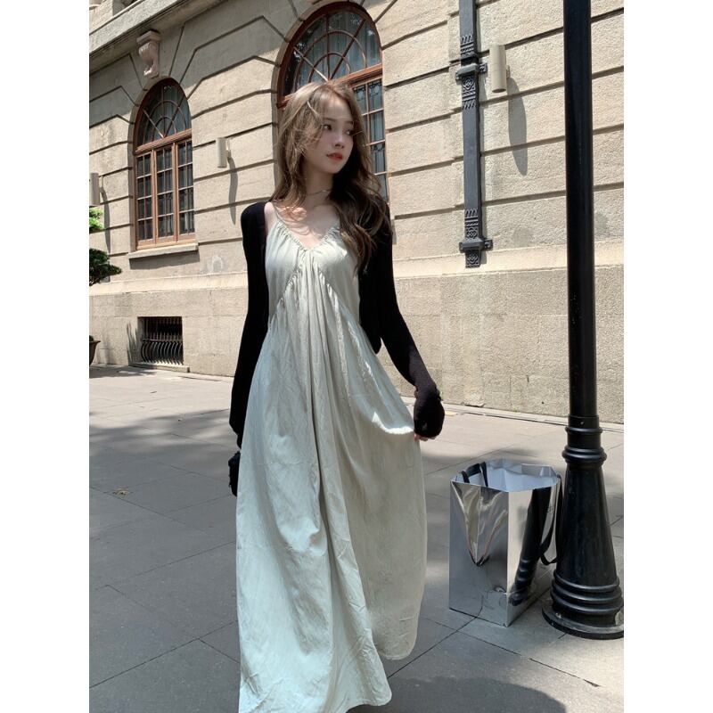 フレンチ V ネックノースリーブサスペンダードレス女性の夏 2023 新しいスタイル純粋な欲望スタイルスリムスリムアウターミッドレングススカート サマー 夏物 Vネック ピュア 0921997192144910
