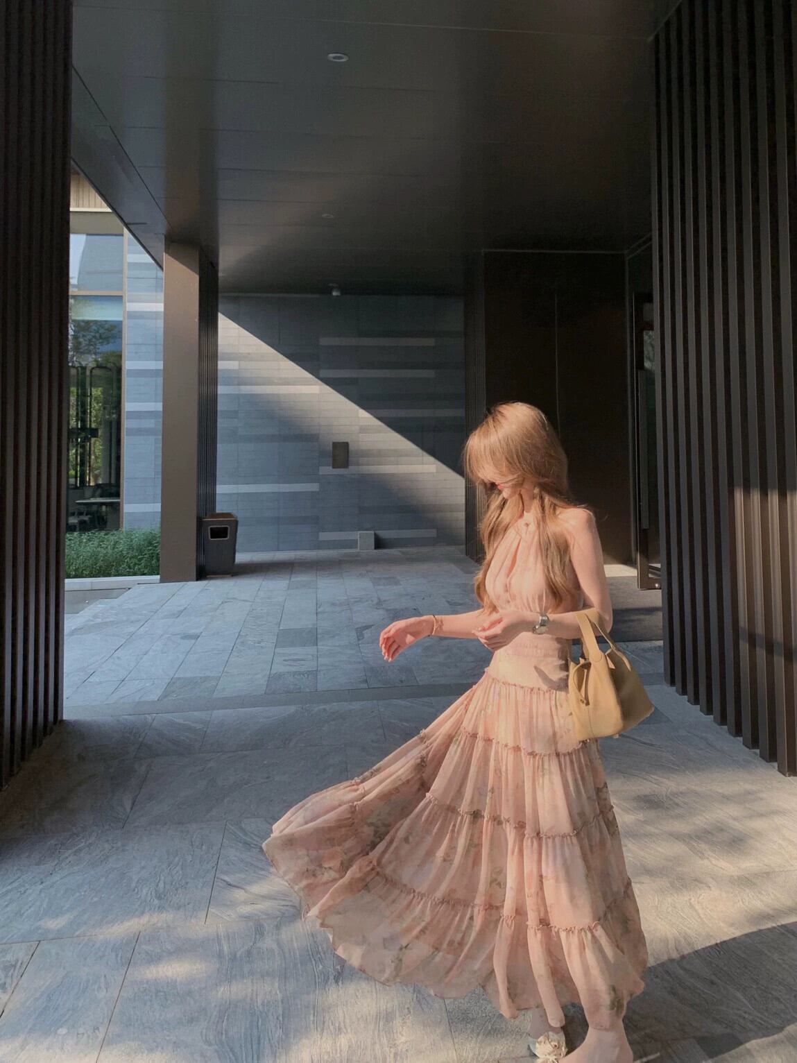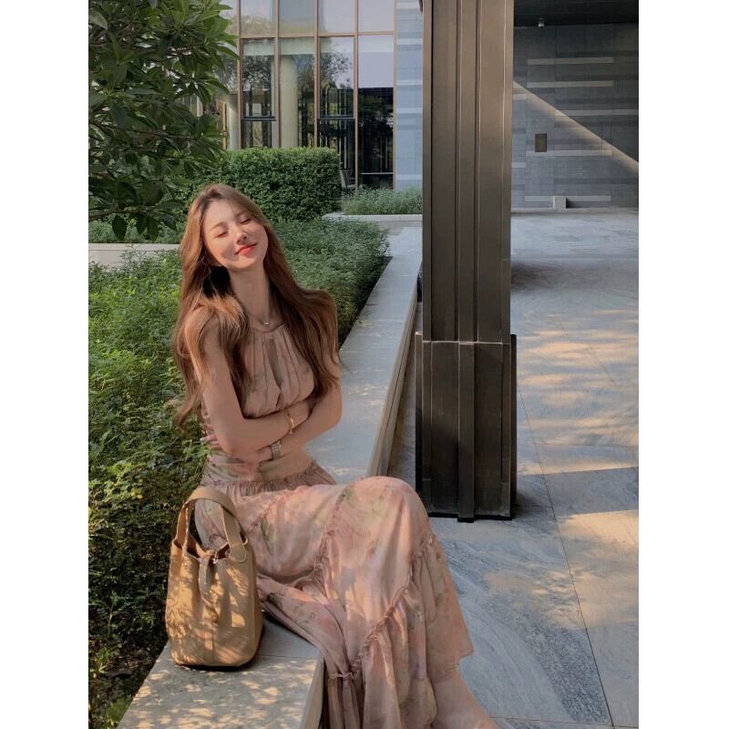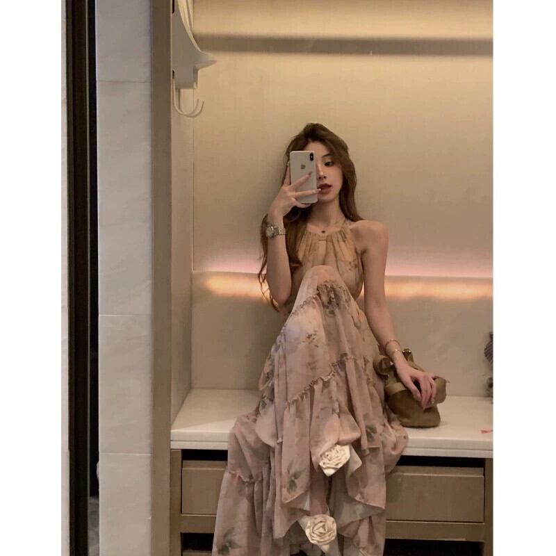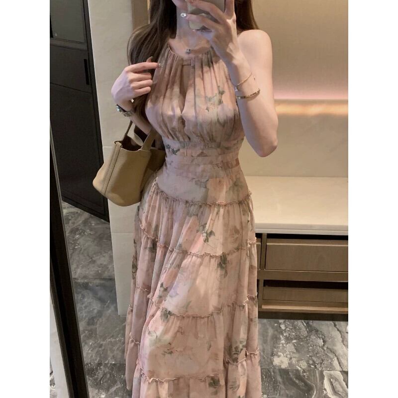 フランスのハイエンドプリントノースリーブドレスの女性の夏の 2023 新しいスタイルウエスト痩身中空 A ラインロングスカート サマー 夏物 Aライン 0921941736682151