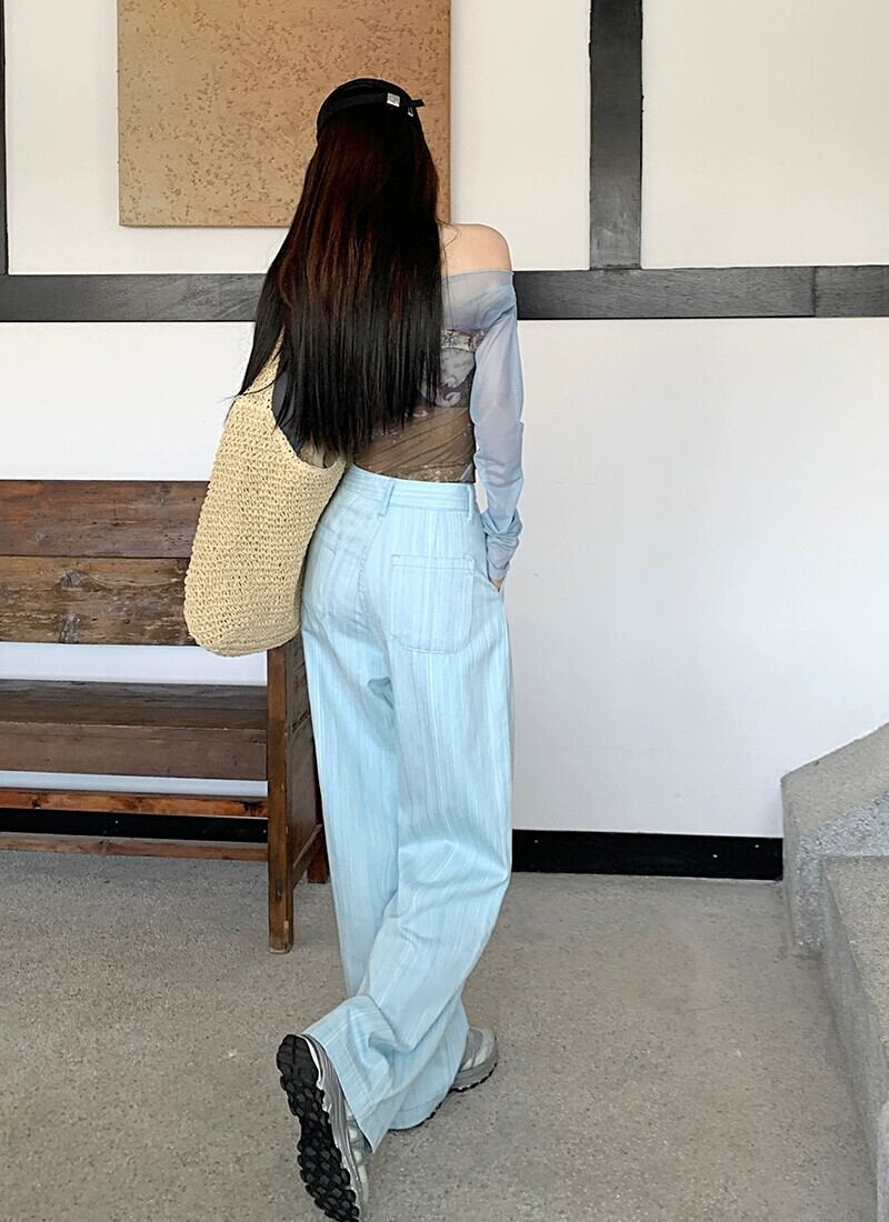 デザインハイウエストスリムジーンズ女性夏 2023 新しいカジュアルルーズワイドレッグロングパンツイン サマー 夏物 0921917984865574