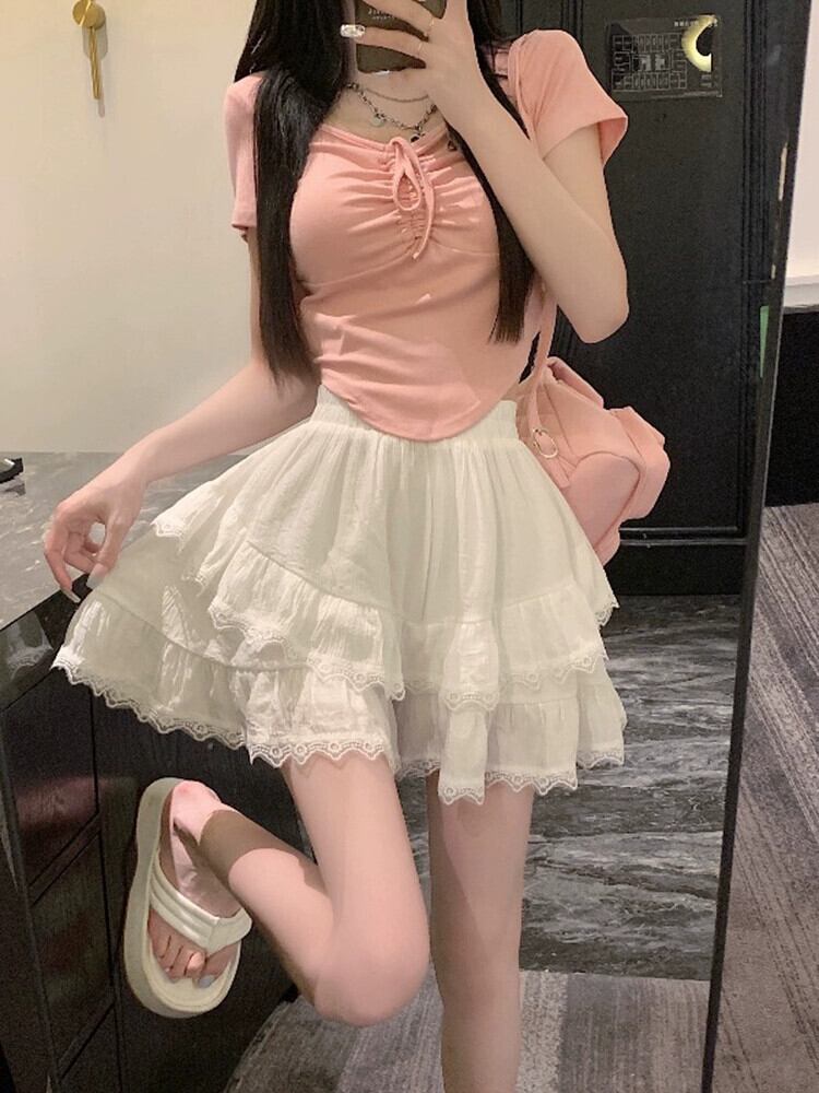 不規則な L レーススカートの女性の夏 2023 新しい多用途ハイウエストスリムアウターウェアふくらはぎスカート サマー 夏物 092193268862692