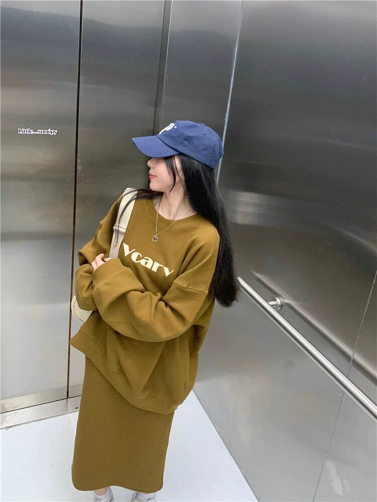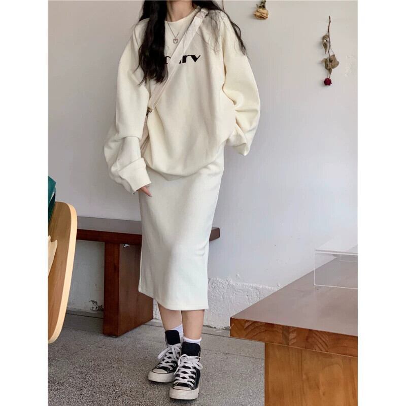 スポーツスーツ女性初秋 2023 新しい長袖ルーズトレーナースリムミッドレングススカート 2 点セット ロング オータム 秋物 0921916805654070